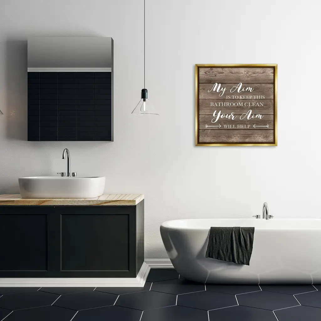 Stupell Sassy Your Aim Toilet Cleanliness Framed Floater Canvas Wall Art Design By Cad Designs - 25 X 25 - Gold