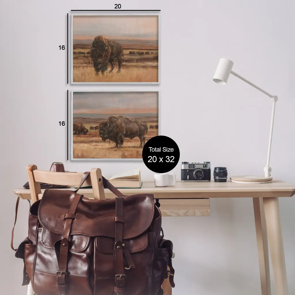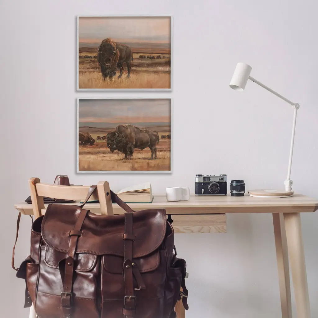 Fill any space in your home or office with our Framed Wall Art Sets. Our framed artwork is securely mounted into a 1.5-inch thick wood grain frame and ready to hang. Frames are available in three alluring styles: black, gray farmhouse and white. Stupell Wall Art is made in the USA.Features: Dimensions: 2 Piece Set, Each Panel is 14 x 1.5 x 11 FramedTwo Piece Framed Giclee Sets are available as 14"x11", 20"x16" or 30"x24" Panels. All Framed Giclee Products have a 1.5" Depth.Wall Art is Ready to Hang with Hardware Free Hanging. No installation required. For Easy Set Up Lean or Layer Artwork on Shelf or Against Wall.Curated Wall Art Sets make it easy for you complete the theme for any room. Our giclée prints are carefully mounted on a durable MDF backing, and then perfectly finished in a 1.5 inch thick woodgrain frame. Mounted frame colors include black, gray farmhouse and white. Made In USA.Artwork Relates To: Animal, Bison, Mammal, Wildlife, Buffalo, Bull, Field, Nature, Farm, CountryDesign by Ethan Harper