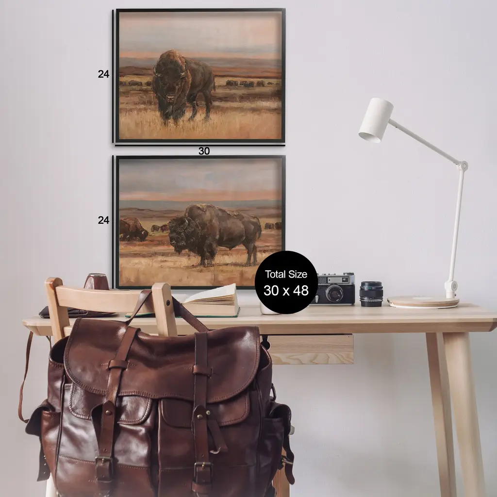 Fill any space in your home or office with our Framed Wall Art Sets. Our framed artwork is securely mounted into a 1.5-inch thick wood grain frame and ready to hang. Frames are available in three alluring styles: black, gray farmhouse and white. Stupell Wall Art is made in the USA.Features: Dimensions: 2 Piece Set, Each Panel is 14 x 1.5 x 11 FramedTwo Piece Framed Giclee Sets are available as 14"x11", 20"x16" or 30"x24" Panels. All Framed Giclee Products have a 1.5" Depth.Wall Art is Ready to Hang with Hardware Free Hanging. No installation required. For Easy Set Up Lean or Layer Artwork on Shelf or Against Wall.Curated Wall Art Sets make it easy for you complete the theme for any room. Our giclée prints are carefully mounted on a durable MDF backing, and then perfectly finished in a 1.5 inch thick woodgrain frame. Mounted frame colors include black, gray farmhouse and white. Made In USA.Artwork Relates To: Animal, Bison, Mammal, Wildlife, Buffalo, Bull, Field, Nature, Farm, CountryDesign by Ethan Harper