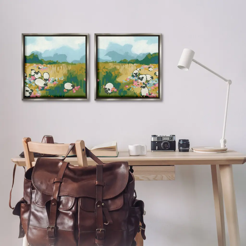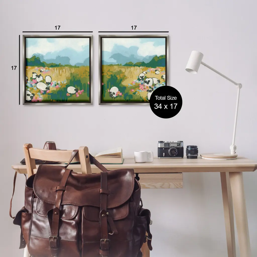 Elevate your home or office to the next level with Stupell Framed Floating Canvas Wall Art. Our premium hand-stretched canvas is mounted securely into a sturdy lightweight frame. The museum-style gap between the wrapped canvas and the box frame gives the illusion of floating artwork. Stupell Wall Art is made in the USA.Features: Dimensions: 2 Piece Set, Each Frame is 18 x 1.7 x 18Two Piece Floating Frame Canvas Products are available as 18"x18" or 25"x25" Panels. All Floating Frame Canvas Products have a 1.7" Depth.Wall Art is Ready to Hang with Hardware Free Hanging. No Installation required. For Easy Set Up Lean or Layer Artwork on Shelf or Against Wall. Artwork is Permently Fixed into the Frame.Our elevated 1.7" Thick Floating Frame is the perfect complement to our canvas style Wall Art. We use only the highest quality inks in house with industry leading printing solutions. Canvas is hand stretched over a durable wood foundation and then mounted securly into a Modern Box Frame. Made in the USA.Artwork Relates To: Painting, Field, Grassland, Nature, Flower, Plant, Countryside, Meadow, Rural, Modern, Abstract, Sheep, Animal, FarmDesign by June Erica Vess