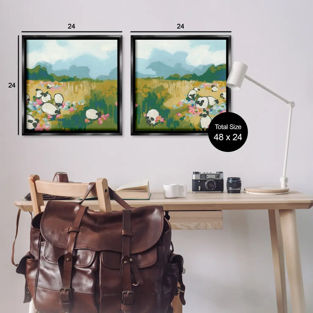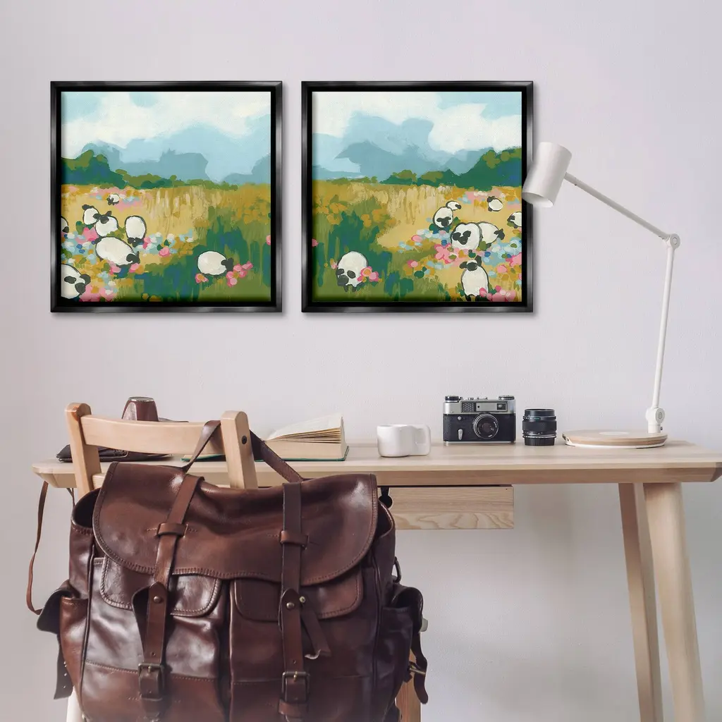 Elevate your home or office to the next level with Stupell Framed Floating Canvas Wall Art. Our premium hand-stretched canvas is mounted securely into a sturdy lightweight frame. The museum-style gap between the wrapped canvas and the box frame gives the illusion of floating artwork. Stupell Wall Art is made in the USA.Features: Dimensions: 2 Piece Set, Each Frame is 18 x 1.7 x 18Two Piece Floating Frame Canvas Products are available as 18"x18" or 25"x25" Panels. All Floating Frame Canvas Products have a 1.7" Depth.Wall Art is Ready to Hang with Hardware Free Hanging. No Installation required. For Easy Set Up Lean or Layer Artwork on Shelf or Against Wall. Artwork is Permently Fixed into the Frame.Our elevated 1.7" Thick Floating Frame is the perfect complement to our canvas style Wall Art. We use only the highest quality inks in house with industry leading printing solutions. Canvas is hand stretched over a durable wood foundation and then mounted securly into a Modern Box Frame. Made in the USA.Artwork Relates To: Painting, Field, Grassland, Nature, Flower, Plant, Countryside, Meadow, Rural, Modern, Abstract, Sheep, Animal, FarmDesign by June Erica Vess