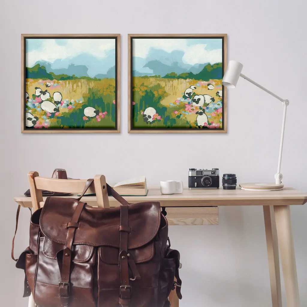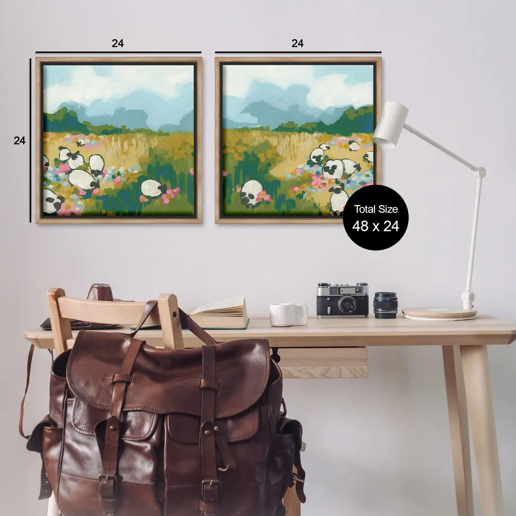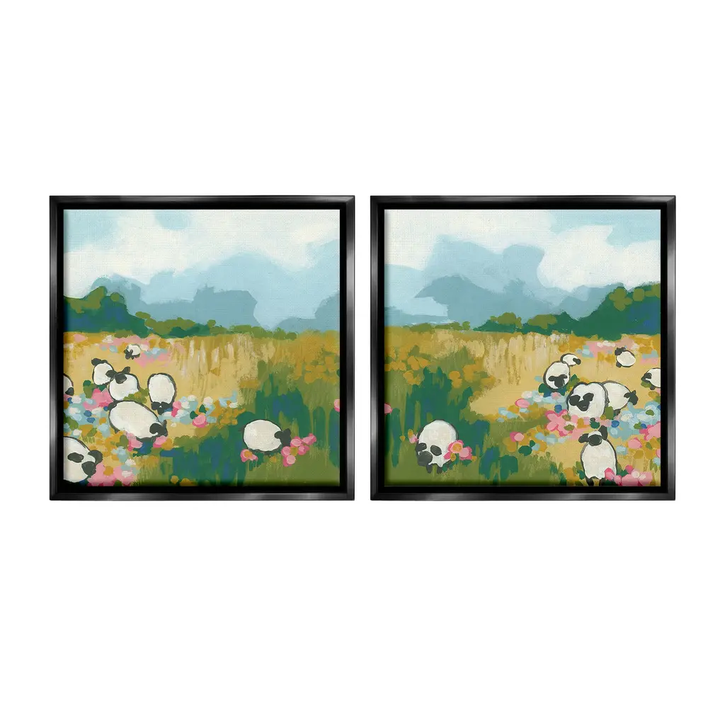 Elevate your home or office to the next level with Stupell Framed Floating Canvas Wall Art. Our premium hand-stretched canvas is mounted securely into a sturdy lightweight frame. The museum-style gap between the wrapped canvas and the box frame gives the illusion of floating artwork. Stupell Wall Art is made in the USA.Features: Dimensions: 2 Piece Set, Each Frame is 18 x 1.7 x 18Two Piece Floating Frame Canvas Products are available as 18"x18" or 25"x25" Panels. All Floating Frame Canvas Products have a 1.7" Depth.Wall Art is Ready to Hang with Hardware Free Hanging. No Installation required. For Easy Set Up Lean or Layer Artwork on Shelf or Against Wall. Artwork is Permently Fixed into the Frame.Our elevated 1.7" Thick Floating Frame is the perfect complement to our canvas style Wall Art. We use only the highest quality inks in house with industry leading printing solutions. Canvas is hand stretched over a durable wood foundation and then mounted securly into a Modern Box Frame. Made in the USA.Artwork Relates To: Painting, Field, Grassland, Nature, Flower, Plant, Countryside, Meadow, Rural, Modern, Abstract, Sheep, Animal, FarmDesign by June Erica Vess