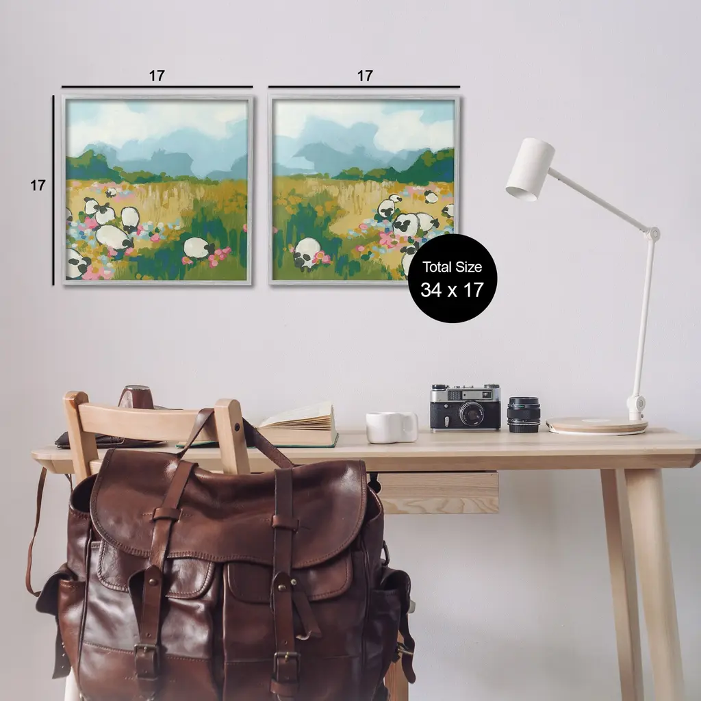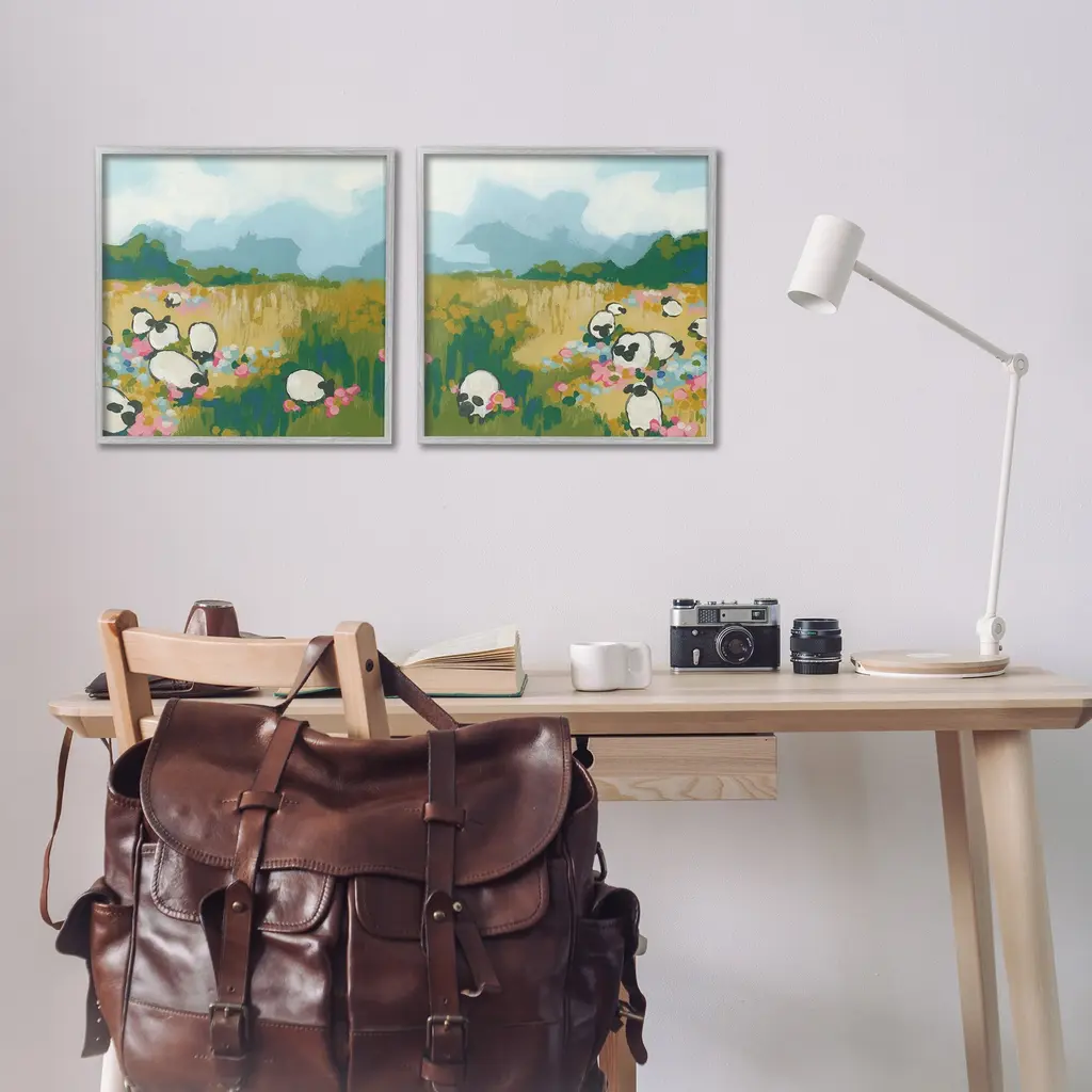 Fill any space in your home or office with our Framed Wall Art Sets. Our framed artwork is securely mounted into a 1.5-inch thick wood grain frame and ready to hang. Frames are available in three alluring styles: black, gray farmhouse and white. Stupell Wall Art is made in the USA.Features: Dimensions: 2 Piece Set, Each Panel is 12 x 1.5 x 12 FramedTwo Piece Framed Giclee Sets are available as 12"x12", 17"x17" or 24"x24" Panels. All Framed giclee Products have a 1.5" Depth.Wall Art is Ready to Hang with Hardware Free Hanging. No installation required. For Easy Set Up Lean or Layer Artwork on Shelf or Against Wall.Curated Wall Art Sets make it easy for you complete the theme for any room. Our giclée prints are carefully mounted on a durable MDF backing, and then perfectly finished in a 1.5 inch thick woodgrain frame. Mounted frame colors include black, gray farmhouse and white. Made In USA.Artwork Relates To: Painting, Field, Grassland, Nature, Flower, Plant, Countryside, Meadow, Rural, Modern, Abstract, Sheep, Animal, FarmDesign by June Erica Vess