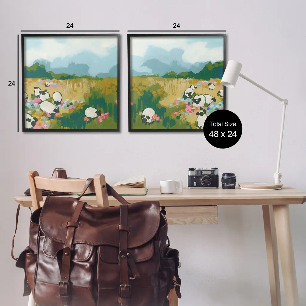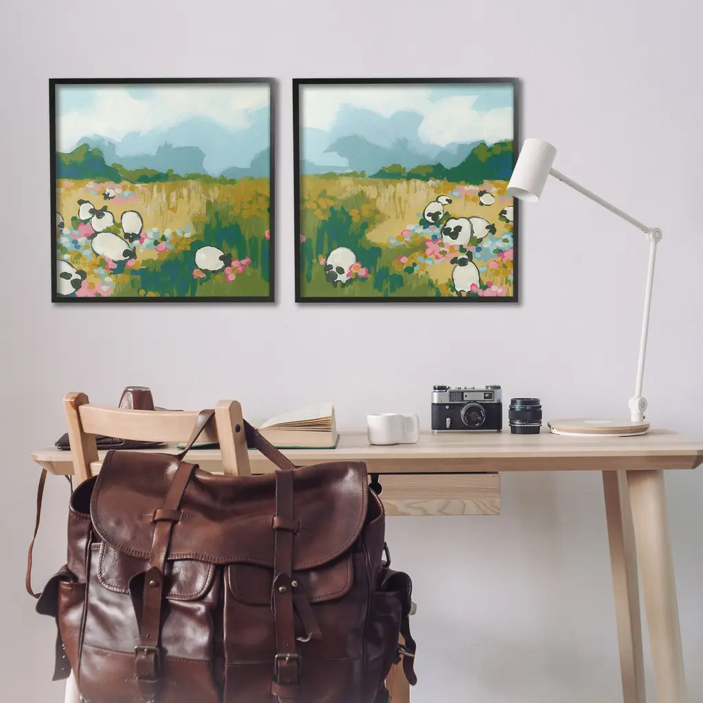 Fill any space in your home or office with our Framed Wall Art Sets. Our framed artwork is securely mounted into a 1.5-inch thick wood grain frame and ready to hang. Frames are available in three alluring styles: black, gray farmhouse and white. Stupell Wall Art is made in the USA.Features: Dimensions: 2 Piece Set, Each Panel is 12 x 1.5 x 12 FramedTwo Piece Framed Giclee Sets are available as 12"x12", 17"x17" or 24"x24" Panels. All Framed giclee Products have a 1.5" Depth.Wall Art is Ready to Hang with Hardware Free Hanging. No installation required. For Easy Set Up Lean or Layer Artwork on Shelf or Against Wall.Curated Wall Art Sets make it easy for you complete the theme for any room. Our giclée prints are carefully mounted on a durable MDF backing, and then perfectly finished in a 1.5 inch thick woodgrain frame. Mounted frame colors include black, gray farmhouse and white. Made In USA.Artwork Relates To: Painting, Field, Grassland, Nature, Flower, Plant, Countryside, Meadow, Rural, Modern, Abstract, Sheep, Animal, FarmDesign by June Erica Vess