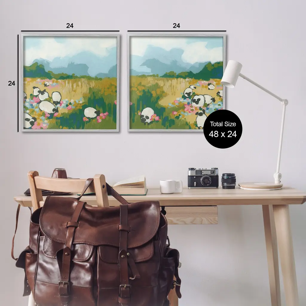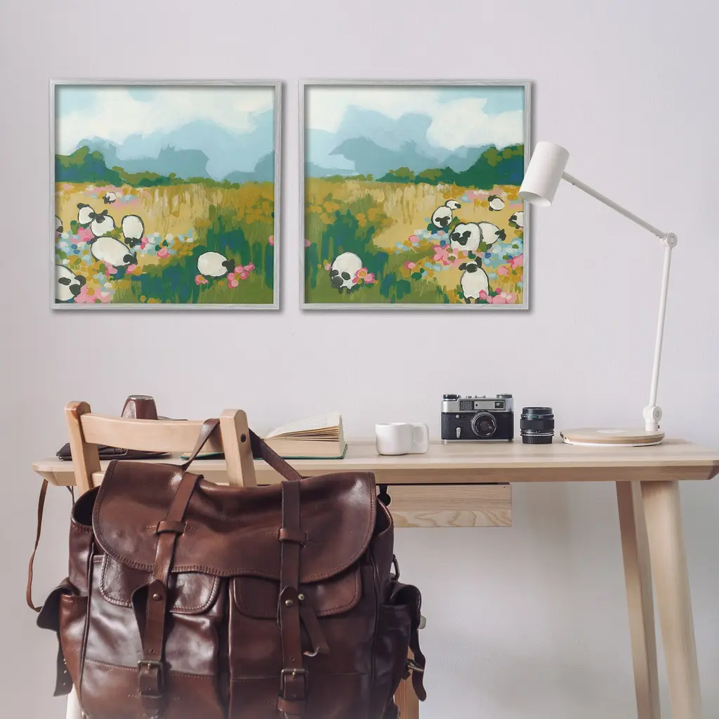Fill any space in your home or office with our Framed Wall Art Sets. Our framed artwork is securely mounted into a 1.5-inch thick wood grain frame and ready to hang. Frames are available in three alluring styles: black, gray farmhouse and white. Stupell Wall Art is made in the USA.Features: Dimensions: 2 Piece Set, Each Panel is 12 x 1.5 x 12 FramedTwo Piece Framed Giclee Sets are available as 12"x12", 17"x17" or 24"x24" Panels. All Framed giclee Products have a 1.5" Depth.Wall Art is Ready to Hang with Hardware Free Hanging. No installation required. For Easy Set Up Lean or Layer Artwork on Shelf or Against Wall.Curated Wall Art Sets make it easy for you complete the theme for any room. Our giclée prints are carefully mounted on a durable MDF backing, and then perfectly finished in a 1.5 inch thick woodgrain frame. Mounted frame colors include black, gray farmhouse and white. Made In USA.Artwork Relates To: Painting, Field, Grassland, Nature, Flower, Plant, Countryside, Meadow, Rural, Modern, Abstract, Sheep, Animal, FarmDesign by June Erica Vess