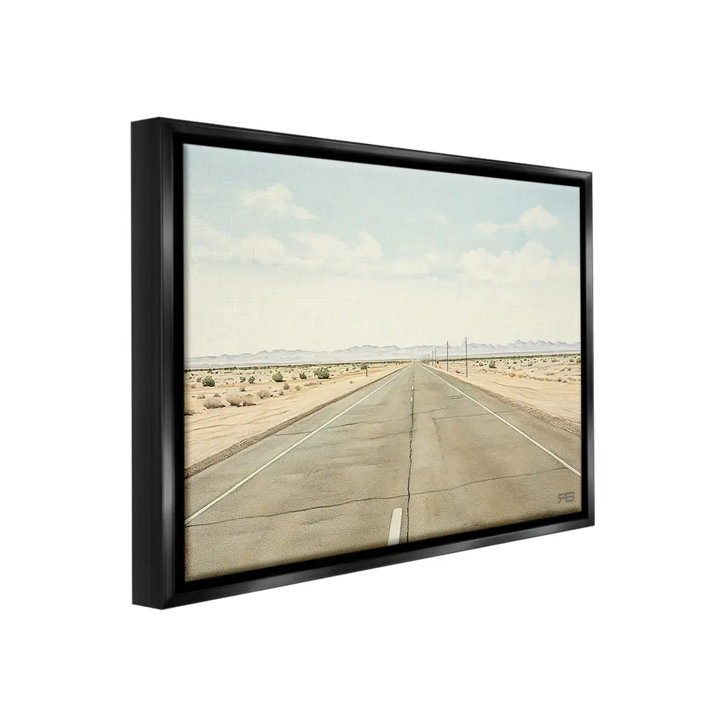 Elevate your home or office to the next level with Stupell Framed Floating Canvas Wall Art. Our premium hand-stretched canvas is mounted securely into a sturdy lightweight frame. The museum-style gap between the wrapped canvas and the box frame gives the illusion of floating artwork. Stupell Wall Art is made in the USA.Features: Dimensions: 21 x 1.7 x 17 Frame, 20 x 1.5 x 16 Canvas ArtFloating Frame Canvas Products are available in sizes 21"x17" and 31"x25". All Floating Frame Canvas Products have a 1.7" Depth.Wall Art is Ready to Hang with Hardware Free Hanging. No Installation required. For Easy Set Up Lean or Layer Artwork on Shelf or Against Wall. Artwork is Permently Fixed into the Frame.Our elevated 1.7" Thick Floating Frame is the perfect complement to our canvas style Wall Art. We use only the highest quality inks in house with industry leading printing solutions. Canvas is hand stretched over a durable wood foundation and then mounted securly into a Modern Box Frame. Made in the USA.Artwork Relates To: Road, Nature, Sky, Freeway, Highway, Ground, Scenery, Landscape, Desert, Cactus, HorizonDesign by RB