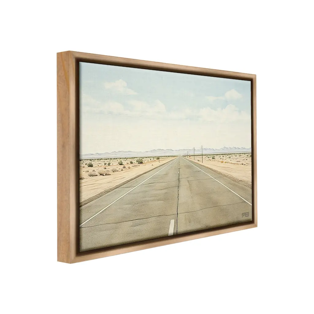 Elevate your home or office to the next level with Stupell Framed Floating Canvas Wall Art. Our premium hand-stretched canvas is mounted securely into a sturdy lightweight frame. The museum-style gap between the wrapped canvas and the box frame gives the illusion of floating artwork. Stupell Wall Art is made in the USA.Features: Dimensions: 21 x 1.7 x 17 Frame, 20 x 1.5 x 16 Canvas ArtFloating Frame Canvas Products are available in sizes 21"x17" and 31"x25". All Floating Frame Canvas Products have a 1.7" Depth.Wall Art is Ready to Hang with Hardware Free Hanging. No Installation required. For Easy Set Up Lean or Layer Artwork on Shelf or Against Wall. Artwork is Permently Fixed into the Frame.Our elevated 1.7" Thick Floating Frame is the perfect complement to our canvas style Wall Art. We use only the highest quality inks in house with industry leading printing solutions. Canvas is hand stretched over a durable wood foundation and then mounted securly into a Modern Box Frame. Made in the USA.Artwork Relates To: Road, Nature, Sky, Freeway, Highway, Ground, Scenery, Landscape, Desert, Cactus, HorizonDesign by RB