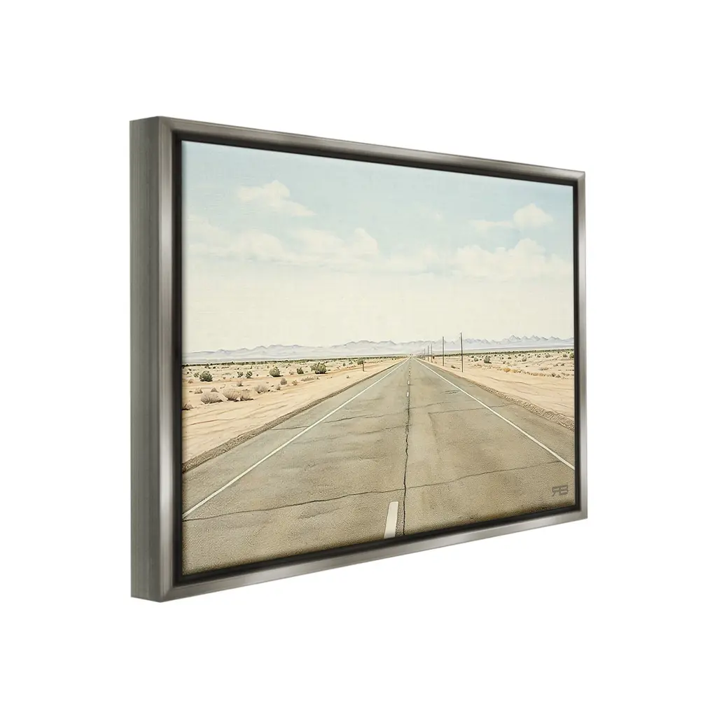 Elevate your home or office to the next level with Stupell Framed Floating Canvas Wall Art. Our premium hand-stretched canvas is mounted securely into a sturdy lightweight frame. The museum-style gap between the wrapped canvas and the box frame gives the illusion of floating artwork. Stupell Wall Art is made in the USA.Features: Dimensions: 21 x 1.7 x 17 Frame, 20 x 1.5 x 16 Canvas ArtFloating Frame Canvas Products are available in sizes 21"x17" and 31"x25". All Floating Frame Canvas Products have a 1.7" Depth.Wall Art is Ready to Hang with Hardware Free Hanging. No Installation required. For Easy Set Up Lean or Layer Artwork on Shelf or Against Wall. Artwork is Permently Fixed into the Frame.Our elevated 1.7" Thick Floating Frame is the perfect complement to our canvas style Wall Art. We use only the highest quality inks in house with industry leading printing solutions. Canvas is hand stretched over a durable wood foundation and then mounted securly into a Modern Box Frame. Made in the USA.Artwork Relates To: Road, Nature, Sky, Freeway, Highway, Ground, Scenery, Landscape, Desert, Cactus, HorizonDesign by RB