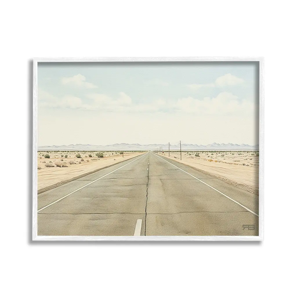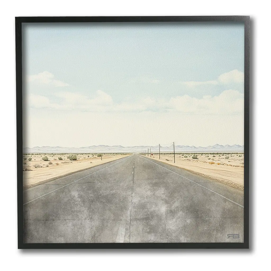 Add dimension to any room with our textured Framed Giclee Artwork. Our framed artwork is securely mounted into a 1.5-inch thick wood grain frame and ready to hang. Frames are available in three alluring styles: black, gray farmhouse and white. In addition, you should check out our oversized options if you want a statement piece. Stupell Wall Art is made in the USA.Features: Dimensions: 14 x 1.5 x 11 FramedFramed Giclee Products are available in the sizes 14"x11", 20"x16" or 30"x24". All Framed Giclee Products have a 1.5" Depth. Wall Art is Ready to Hang with Hardware Free Hanging. No installation required. For Easy Set Up Lean or Layer Artwork on Shelf or Against Wall.Our giclée prints are carefully mounted on a durable MDF backing, and then perfectly finished in a 1.5 inch thick woodgrain frame. Mounted frame colors include black, gray farmhouse and white. Made In USA.Artwork Relates To: Road, Nature, Sky, Freeway, Highway, Ground, Scenery, Landscape, Desert, Cactus, HorizonDesign by RB