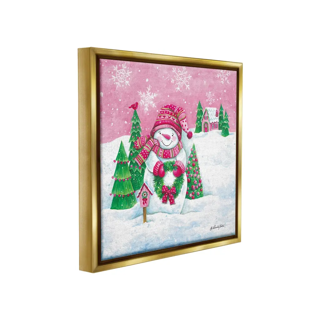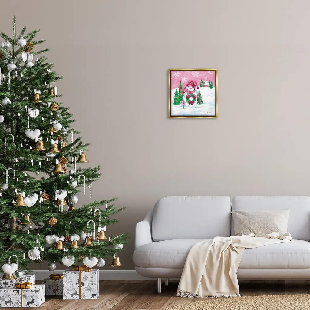 Stupell Scenic Winter Snowman Framed Floater Canvas Wall Art Design By Diane Kater - 18 X 18 - Gold