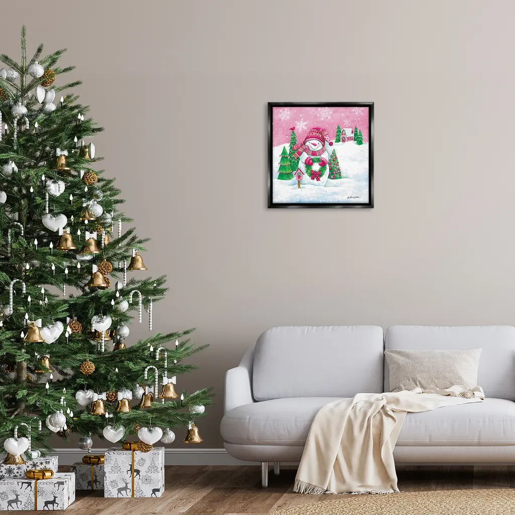 Stupell Scenic Winter Snowman Framed Floater Canvas Wall Art Design By Diane Kater - 25 X 25 - Black