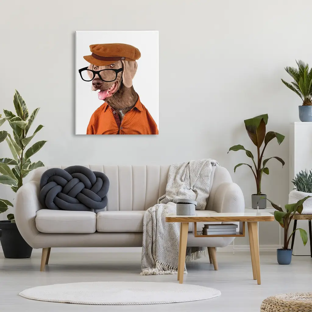 We create our stretched canvas to the highest standards. Using only the highest quality inks and canvas on Mimaki printers, we hand-cut and stretch each piece over a 1.5-inch thick wooden frame for hanging. As a result, the art comes ready to hang on the sturdy ledge with no installation required. Stupell Wall Art is made in the USA.Features: Dimensions: 16 x 1.5 x 20 InchesStretched Canvas Sizes Include Standard: 16 x 1.5 x 20 Large: 20 x 1.5 x 30 X-Large: 30 x 1.5 x 40 Oversized: 36 x 1.5 x 48Wall Art is Ready to Hang with Hardware Free Hanging. No installation required. For Easy Set Up Lean or Layer Artwork on Shelf or Against Wall.Our stretched canvas is created with the highest standards. We use only the highest quality inks and canvas on our in house Mimaki printers, and then hand cut and stretch each piece over a 1.5 inch thick wooden frame for hanging. Made In USA.Artwork Relates To: Hat, Glasses, Dog, Animal, PetDesign by Karen Smith