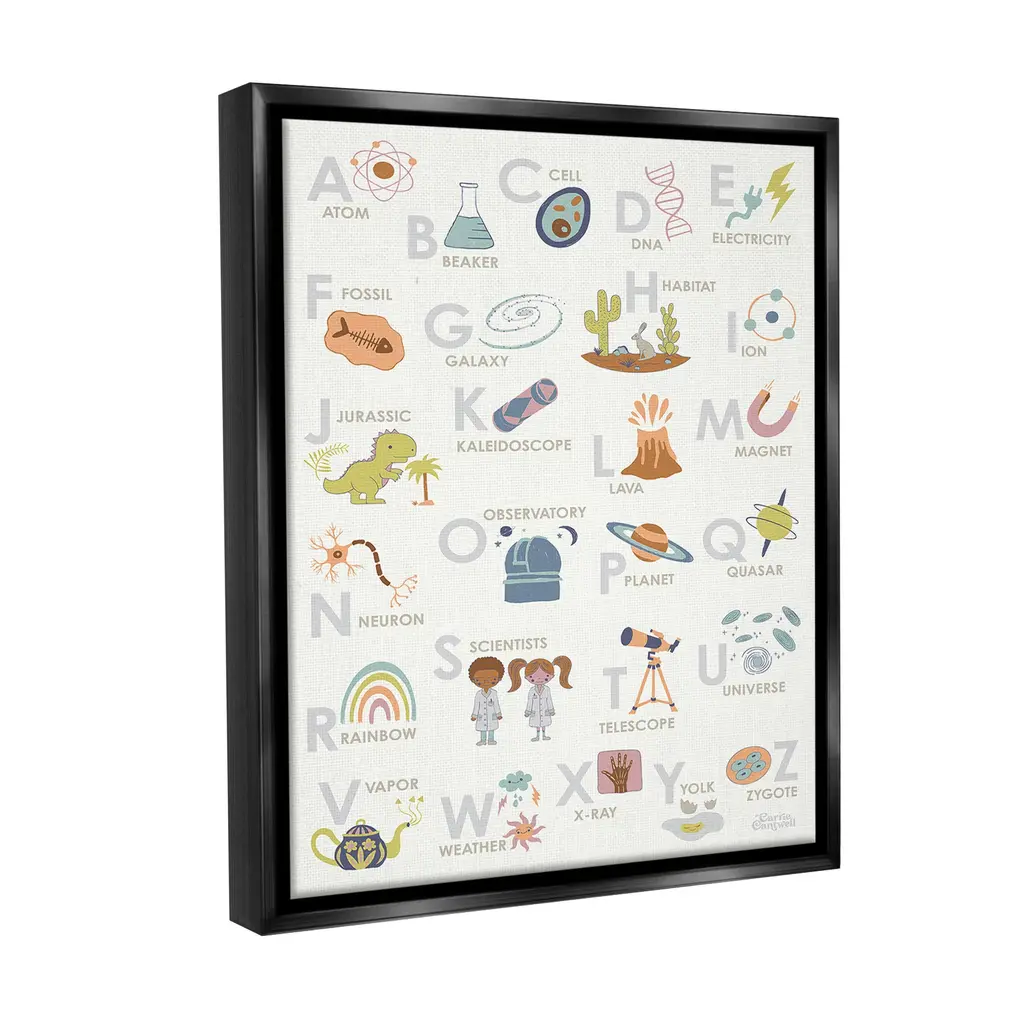 Stupell Science Theme Alphabet Framed Floater Canvas Wall Art Design By Carrie Cantwell - 17 X 21 - Black