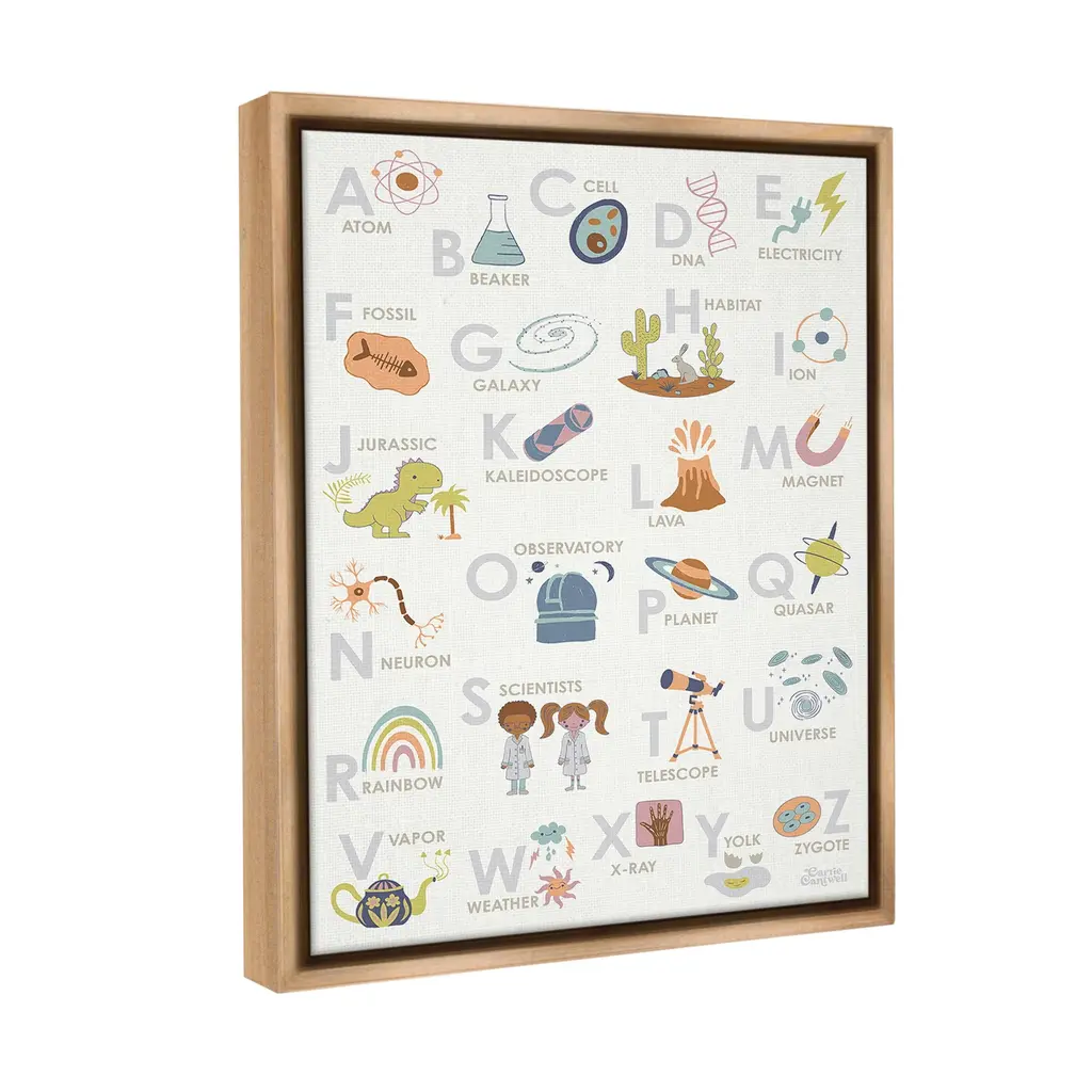 Stupell Science Theme Alphabet Framed Floater Canvas Wall Art Design By Carrie Cantwell - 17 X 21 - Brown