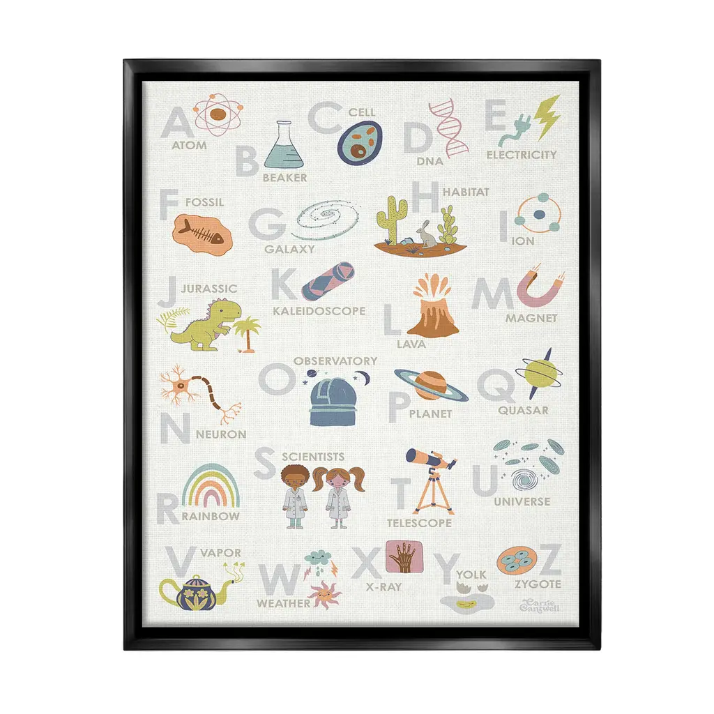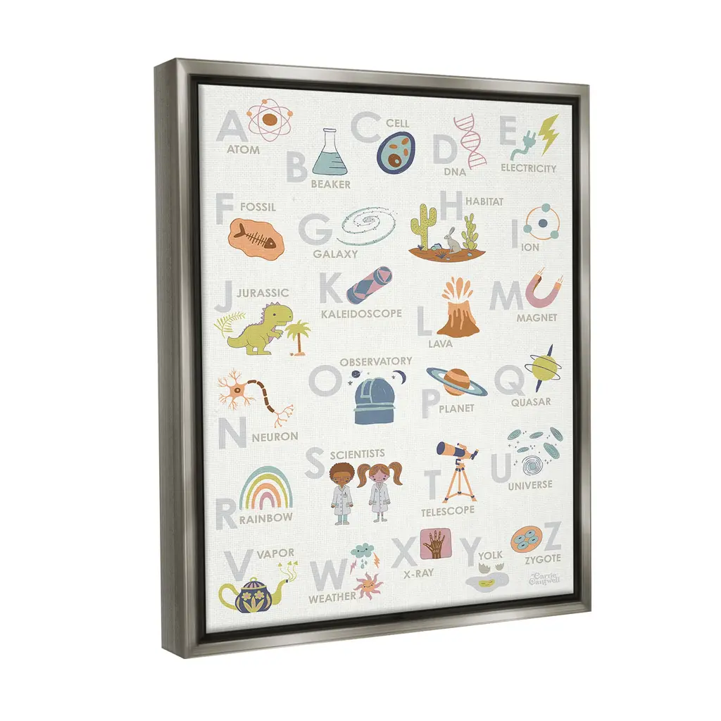 Stupell Science Theme Alphabet Framed Floater Canvas Wall Art Design By Carrie Cantwell - 25 X 31 - Grey