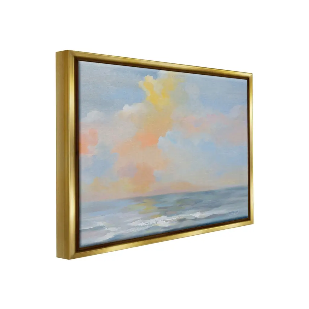 Elevate your home or office to the next level with Stupell Framed Floating Canvas Wall Art. Our premium hand-stretched canvas is mounted securely into a sturdy lightweight frame. The museum-style gap between the wrapped canvas and the box frame gives the illusion of floating artwork. Stupell Wall Art is made in the USA.Features: Dimensions: 21 x 1.7 x 17 Frame, 20 x 1.5 x 16 Canvas ArtFloating Frame Canvas Products are available in sizes 21"x17" and 31"x25". All Floating Frame Canvas Products have a 1.7" Depth.Wall Art is Ready to Hang with Hardware Free Hanging. No Installation required. For Easy Set Up Lean or Layer Artwork on Shelf or Against Wall. Artwork is Permently Fixed into the Frame.Our elevated 1.7" Thick Floating Frame is the perfect complement to our canvas style Wall Art. We use only the highest quality inks in house with industry leading printing solutions. Canvas is hand stretched over a durable wood foundation and then mounted securly into a Modern Box Frame. Made in the USA.Artwork Relates To: Painting, Nature, Sky, Horizon, Water, Ocean, Sea, Clouds, Pastel, Sunset, SunriseDesign by Silvia Vassileva