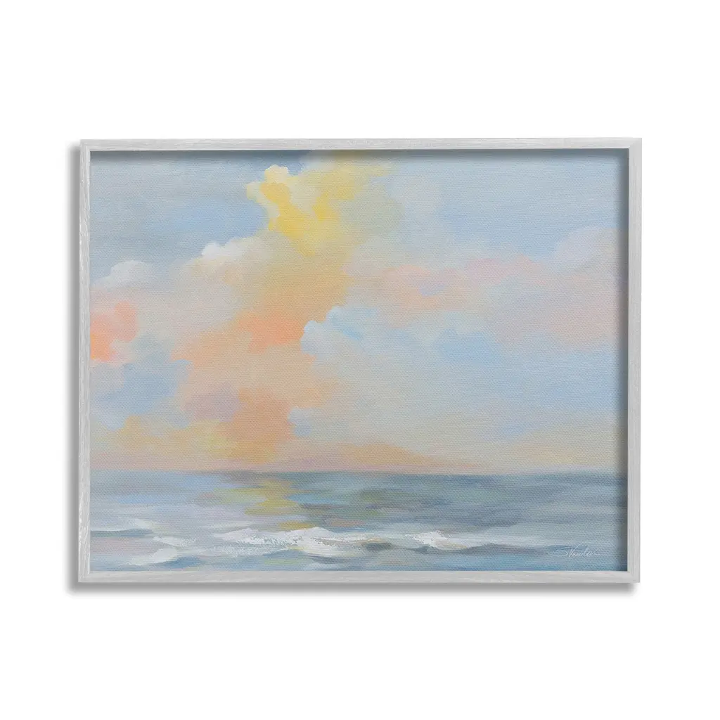 Add dimension to any room with our textured Framed Giclee Artwork. Our framed artwork is securely mounted into a 1.5-inch thick wood grain frame and ready to hang. Frames are available in three alluring styles: black, gray farmhouse and white. In addition, you should check out our oversized options if you want a statement piece. Stupell Wall Art is made in the USA.Features: Dimensions: 14 x 1.5 x 11 FramedFramed Giclee Products are available in the sizes 14"x11", 20"x16" or 30"x24". All Framed Giclee Products have a 1.5" Depth. Wall Art is Ready to Hang with Hardware Free Hanging. No installation required. For Easy Set Up Lean or Layer Artwork on Shelf or Against Wall.Our giclée prints are carefully mounted on a durable MDF backing, and then perfectly finished in a 1.5 inch thick woodgrain frame. Mounted frame colors include black, gray farmhouse and white. Made In USA.Artwork Relates To: Painting, Nature, Sky, Horizon, Water, Ocean, Sea, Clouds, Pastel, Sunset, SunriseDesign by Silvia Vassileva