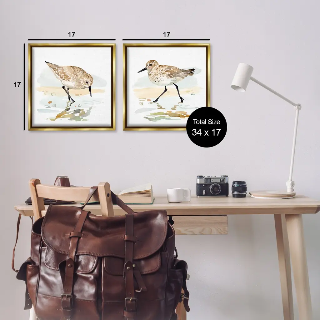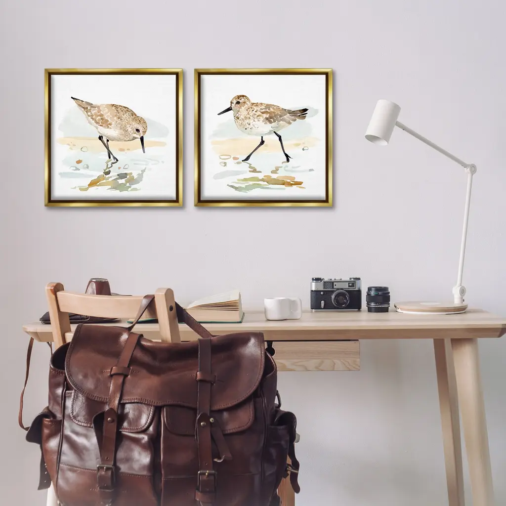Elevate your home or office to the next level with Stupell Framed Floating Canvas Wall Art. Our premium hand-stretched canvas is mounted securely into a sturdy lightweight frame. The museum-style gap between the wrapped canvas and the box frame gives the illusion of floating artwork. Stupell Wall Art is made in the USA.Features: Dimensions: 2 Piece Set, Each Frame is 18 x 1.7 x 18Two Piece Floating Frame Canvas Products are available as 18"x18" or 25"x25" Panels. All Floating Frame Canvas Products have a 1.7" Depth.Wall Art is Ready to Hang with Hardware Free Hanging. No Installation required. For Easy Set Up Lean or Layer Artwork on Shelf or Against Wall. Artwork is Permently Fixed into the Frame.Our elevated 1.7" Thick Floating Frame is the perfect complement to our canvas style Wall Art. We use only the highest quality inks in house with industry leading printing solutions. Canvas is hand stretched over a durable wood foundation and then mounted securly into a Modern Box Frame. Made in the USA.Artwork Relates To: Animal, Bird, Waterfowl, Beach, Seashell, Sea Life, Starfish, Shore, Coastal, SandpiperDesign by Victoria Barnes
