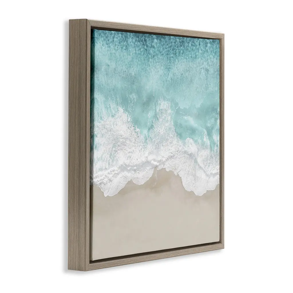 Elevate your home or office to the next level with Stupell Framed Floating Canvas Wall Art. Our premium hand-stretched canvas is mounted securely into a sturdy lightweight frame. The museum-style gap between the wrapped canvas and the box frame gives the illusion of floating artwork. Stupell Wall Art is made in the USA.Features: Dimensions: 18 x 1.7 x 18 Frame, 17 x 1.5 x 17 Canvas ArtFloating Frame Canvas Products are available in sizes 18"x18" and 25"x25". All Floating Frame Canvas Products have a 1.7" Depth.Wall Art is Ready to Hang with Hardware Free Hanging. No Installation required. For Easy Set Up Lean or Layer Artwork on Shelf or Against Wall. Artwork is Permently Fixed into the Frame.Our elevated 1.7" Thick Floating Frame is the perfect complement to our canvas style Wall Art. We use only the highest quality inks in house with industry leading printing solutions. Canvas is hand stretched over a durable wood foundation and then mounted securly into a Modern Box Frame. Made in the USA.Artwork Relates To: Nautical, Beach, Ocean, Shore, Aerial, WavesDesign by Maggie Olsen