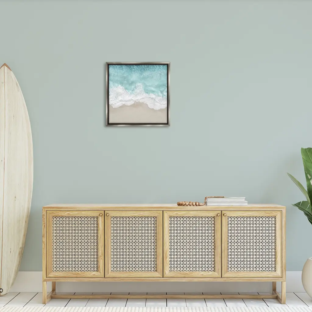 Elevate your home or office to the next level with Stupell Framed Floating Canvas Wall Art. Our premium hand-stretched canvas is mounted securely into a sturdy lightweight frame. The museum-style gap between the wrapped canvas and the box frame gives the illusion of floating artwork. Stupell Wall Art is made in the USA.Features: Dimensions: 18 x 1.7 x 18 Frame, 17 x 1.5 x 17 Canvas ArtFloating Frame Canvas Products are available in sizes 18"x18" and 25"x25". All Floating Frame Canvas Products have a 1.7" Depth.Wall Art is Ready to Hang with Hardware Free Hanging. No Installation required. For Easy Set Up Lean or Layer Artwork on Shelf or Against Wall. Artwork is Permently Fixed into the Frame.Our elevated 1.7" Thick Floating Frame is the perfect complement to our canvas style Wall Art. We use only the highest quality inks in house with industry leading printing solutions. Canvas is hand stretched over a durable wood foundation and then mounted securly into a Modern Box Frame. Made in the USA.Artwork Relates To: Nautical, Beach, Ocean, Shore, Aerial, WavesDesign by Maggie Olsen