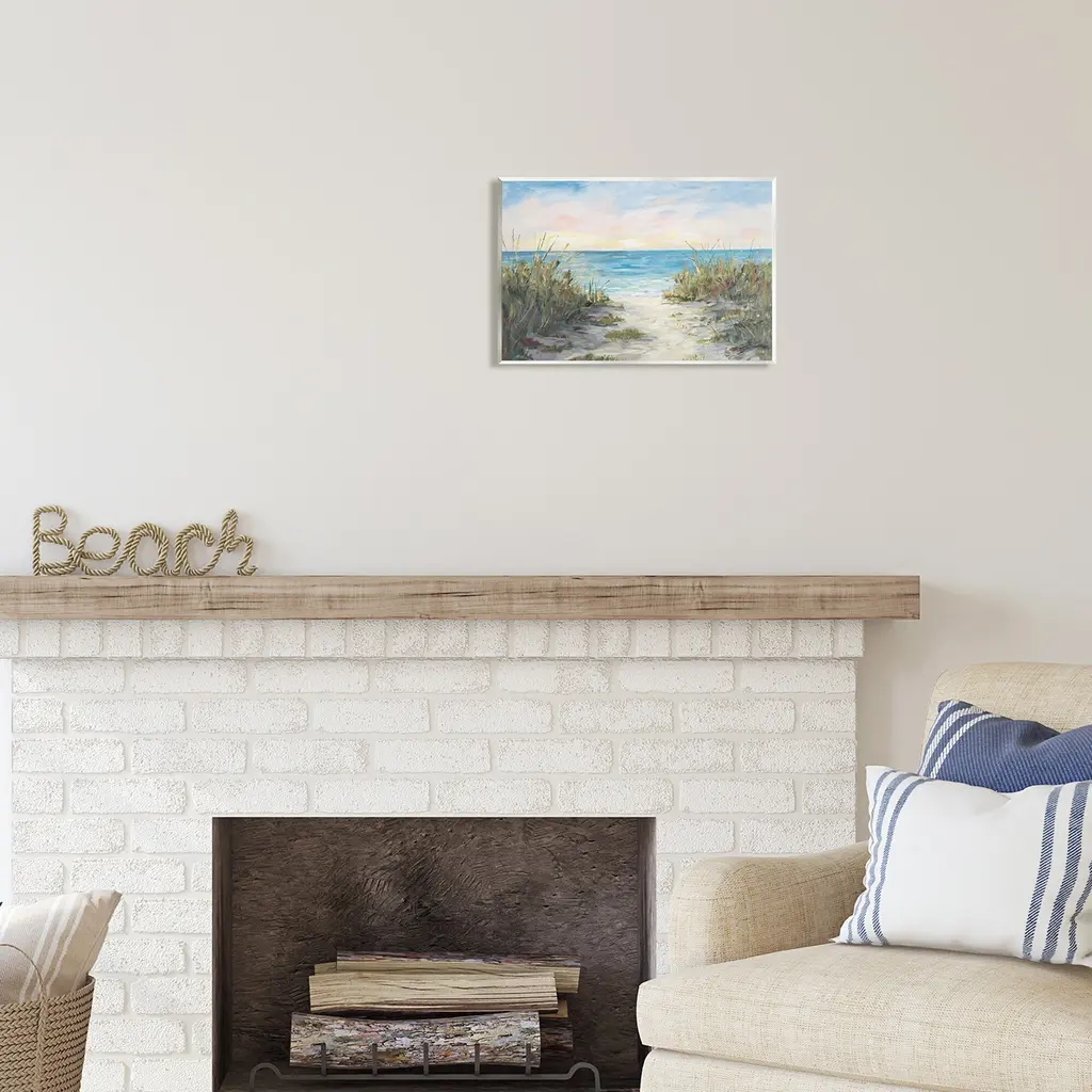 Our wall plaques start as high-quality lithograph prints mounted on durable 0.5-inch thick MDF wood. Each piece is hand finished and comes with a fresh layer of white foil on the sides to give it a crisp, clean look. Plaques arrive ready to hang without installation and come with removable plastic corners to keep them from damage in transit. Stupell Wall Art is made in the USA.Features: Dimensions: 15 x 0.5 x 10 InchesWall Plaque Sizes Include Standard: 15 x 0.5 x 10 Oversized: 19 x 0.5 x 13Wall Art is Ready to Hang with Hardware Free Hanging. No installation required. For Easy Set Up Lean or Layer Artwork on Shelf or Against Wall.All of our wall plaques start off as high quality lithograph prints that are then mounted on durable 0.5 inch thick MDF wood. Each piece is hand finished and comes with a fresh layer of foil on the sides to give it a crisp clean look. Made In USA.Artwork Relates To: Painting, Water, Shoreline, Sea, Grass, Plant, Beach, CoastDesign by Julie Derice