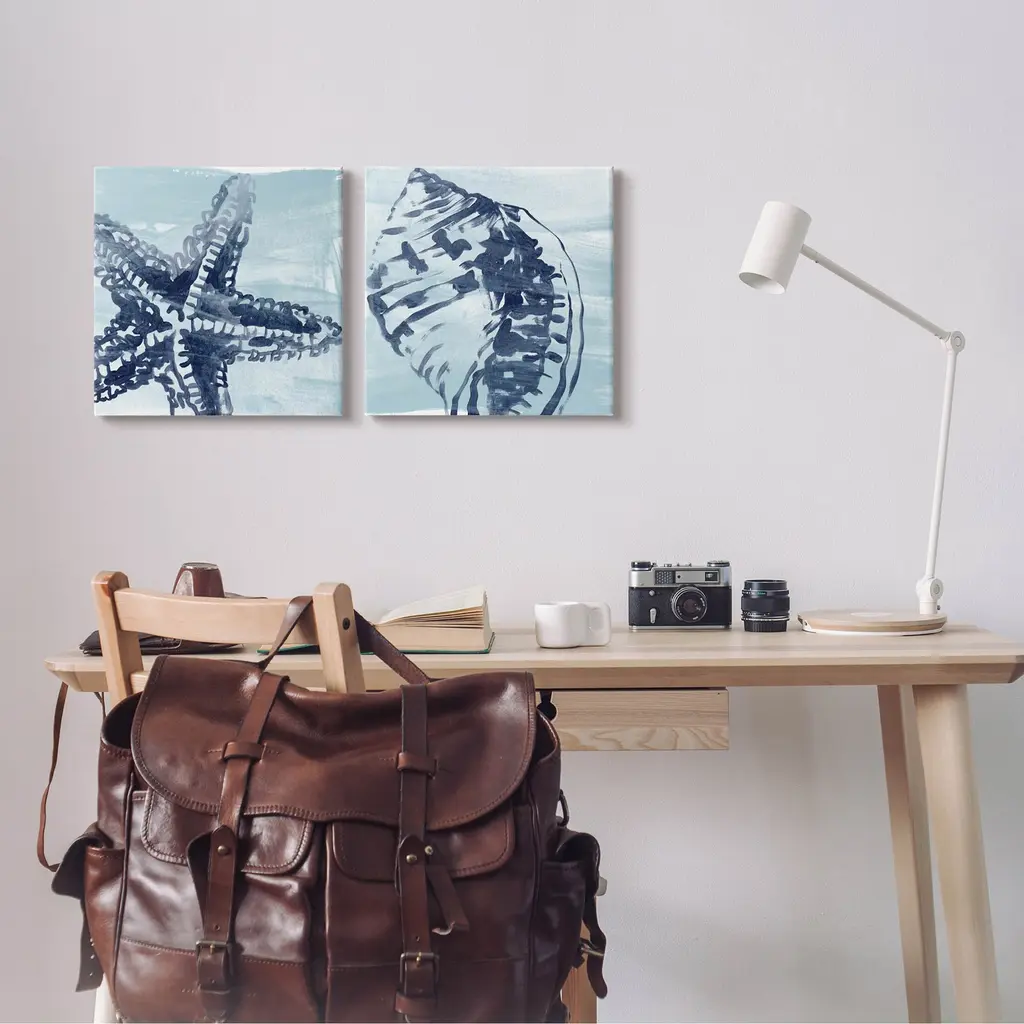 The more the better, right? Multi-Piece Canvas Sets help fill up the entire wall with excitement. Proudly made in the USA, Our stretched canvas is created with the highest standards. We use only the highest quality inks and canvas on our in house printers, and then hand cut and stretch each piece over a 1.5 inch thick wooden frame for hanging. The art comes ready to hang with no installation required.Features:Dimensions: 2 Piece Set, Each Panel is 17 x 1.5 x 17 InchesStretched Canvas Set Sizes IncludeStandard: 2pc, Each is 17 x 1.5 x 17Large: 2pc, Each is 24 x 1.5 x 24Wall Art is Ready to Hang - No Installation or Hardware Needed. For Easy Set Up Lean or Layer Artwork on Shelf or Against Wall.Our stretched canvas is created with the highest standards. We use only the highest quality inks and canvas on our in house Mimaki printers, and then hand cut and stretch each piece over a 1.5 inch thick wooden frame for hanging. Made In USA.Artwork Relates To: Sea Life; Animal; Starfish; Invertebrate; SeashellDesign by June Erica Vess