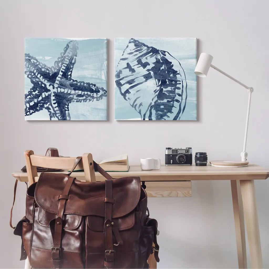The more the better, right? Multi-Piece Canvas Sets help fill up the entire wall with excitement. Proudly made in the USA, Our stretched canvas is created with the highest standards. We use only the highest quality inks and canvas on our in house printers, and then hand cut and stretch each piece over a 1.5 inch thick wooden frame for hanging. The art comes ready to hang with no installation required.Features:Dimensions: 2 Piece Set, Each Panel is 17 x 1.5 x 17 InchesStretched Canvas Set Sizes IncludeStandard: 2pc, Each is 17 x 1.5 x 17Large: 2pc, Each is 24 x 1.5 x 24Wall Art is Ready to Hang - No Installation or Hardware Needed. For Easy Set Up Lean or Layer Artwork on Shelf or Against Wall.Our stretched canvas is created with the highest standards. We use only the highest quality inks and canvas on our in house Mimaki printers, and then hand cut and stretch each piece over a 1.5 inch thick wooden frame for hanging. Made In USA.Artwork Relates To: Sea Life; Animal; Starfish; Invertebrate; SeashellDesign by June Erica Vess