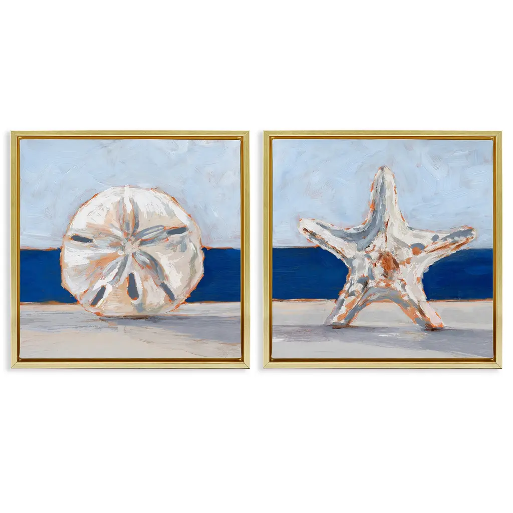 Elevate your home or office to the next level with Stupell Framed Floating Canvas Wall Art. Our premium hand-stretched canvas is mounted securely into a sturdy lightweight frame. The museum-style gap between the wrapped canvas and the box frame gives the illusion of floating artwork. Stupell Wall Art is made in the USA.Features: Dimensions: 2 Piece Set, Each Frame is 18 x 1.7 x 18Two Piece Floating Frame Canvas Products are available as 18"x18" or 25"x25" Panels. All Floating Frame Canvas Products have a 1.7" Depth.Wall Art is Ready to Hang with Hardware Free Hanging. No Installation required. For Easy Set Up Lean or Layer Artwork on Shelf or Against Wall. Artwork is Permently Fixed into the Frame.Our elevated 1.7" Thick Floating Frame is the perfect complement to our canvas style Wall Art. We use only the highest quality inks in house with industry leading printing solutions. Canvas is hand stretched over a durable wood foundation and then mounted securly into a Modern Box Frame. Made in the USA.Artwork Relates To: Beach, Nautical, Sea Life, Painting, Invertebrate, Starfish, BlueDesign by Ethan Harper