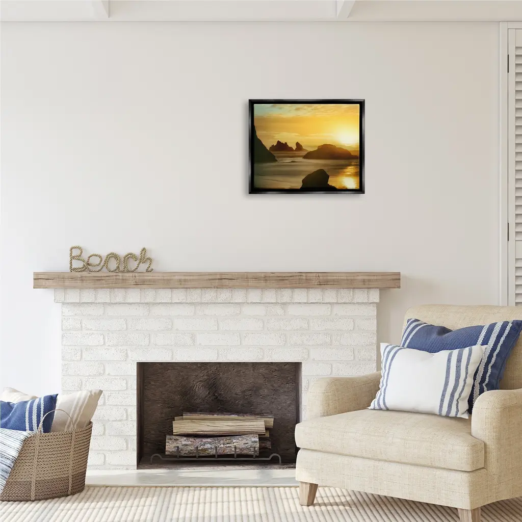 Stupell Sea Stacks At Sunset Framed Floater Canvas Wall Art Design By Dennis Frates - 21 X 17 - Black