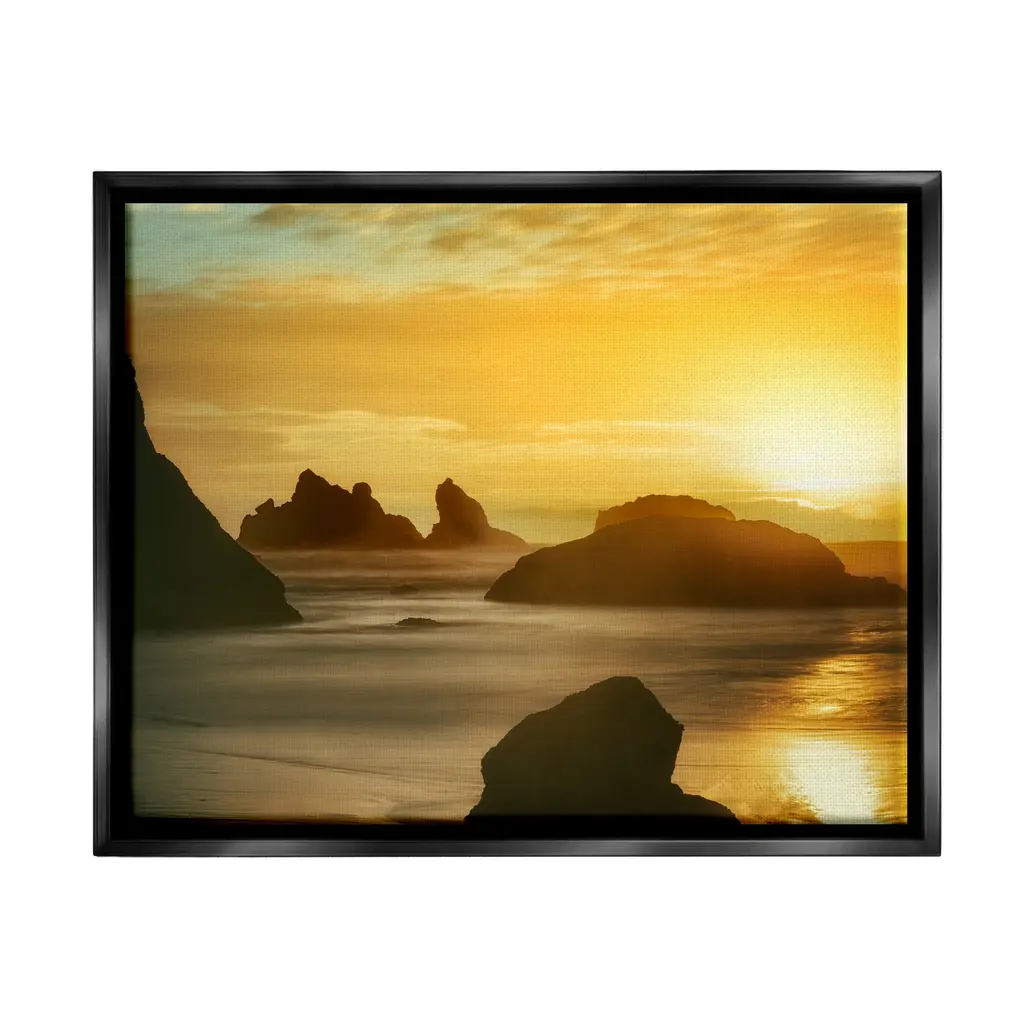 Elevate your home or office to the next level with Stupell Framed Floating Canvas Wall Art. Our premium hand-stretched canvas is mounted securely into a sturdy lightweight frame. The museum-style gap between the wrapped canvas and the box frame gives the illusion of floating artwork. Stupell Wall Art is made in the USA.Features: Dimensions: 21 x 1.7 x 17 Frame, 20 x 1.5 x 16 Canvas ArtFloating Frame Sizes Include Standard: 21 x 1.7 x 17 Oversized: 31 x 1.7 x 25Wall Art is Ready to Hang with Hardware Free Hanging. No installation required. For Easy Set Up Lean or Layer Artwork on Shelf or Against Wall.Our elevated 1.7" Thick Floating Frame is the perfect complement to our canvas style Wall Art. We use only the highest quality inks in house with industry leading printing solutions. Canvas is hand stretched over a durable wood foundation and then mounted securly into a Modern Box Frame. Made in the USA.Artwork Relates To: Nature, Outdoors, Sea, Water, Scenery, Cliff, Sunset, SunriseDesign by Dennis Frates