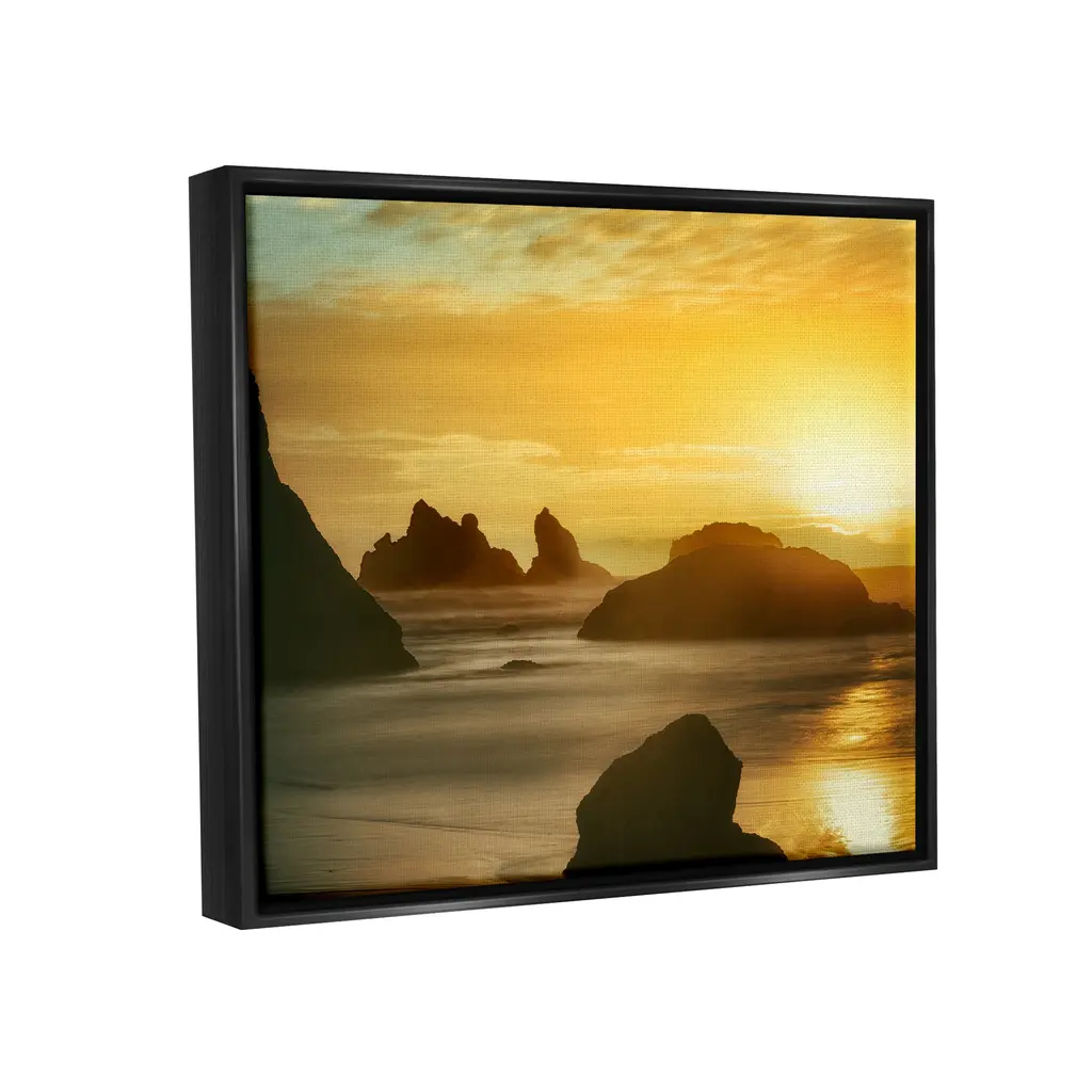 Elevate your home or office to the next level with Stupell Framed Floating Canvas Wall Art. Our premium hand-stretched canvas is mounted securely into a sturdy lightweight frame. The museum-style gap between the wrapped canvas and the box frame gives the illusion of floating artwork. Stupell Wall Art is made in the USA.Features: Dimensions: 21 x 1.7 x 17 Frame, 20 x 1.5 x 16 Canvas ArtFloating Frame Sizes Include Standard: 21 x 1.7 x 17 Oversized: 31 x 1.7 x 25Wall Art is Ready to Hang with Hardware Free Hanging. No installation required. For Easy Set Up Lean or Layer Artwork on Shelf or Against Wall.Our elevated 1.7" Thick Floating Frame is the perfect complement to our canvas style Wall Art. We use only the highest quality inks in house with industry leading printing solutions. Canvas is hand stretched over a durable wood foundation and then mounted securly into a Modern Box Frame. Made in the USA.Artwork Relates To: Nature, Outdoors, Sea, Water, Scenery, Cliff, Sunset, SunriseDesign by Dennis Frates