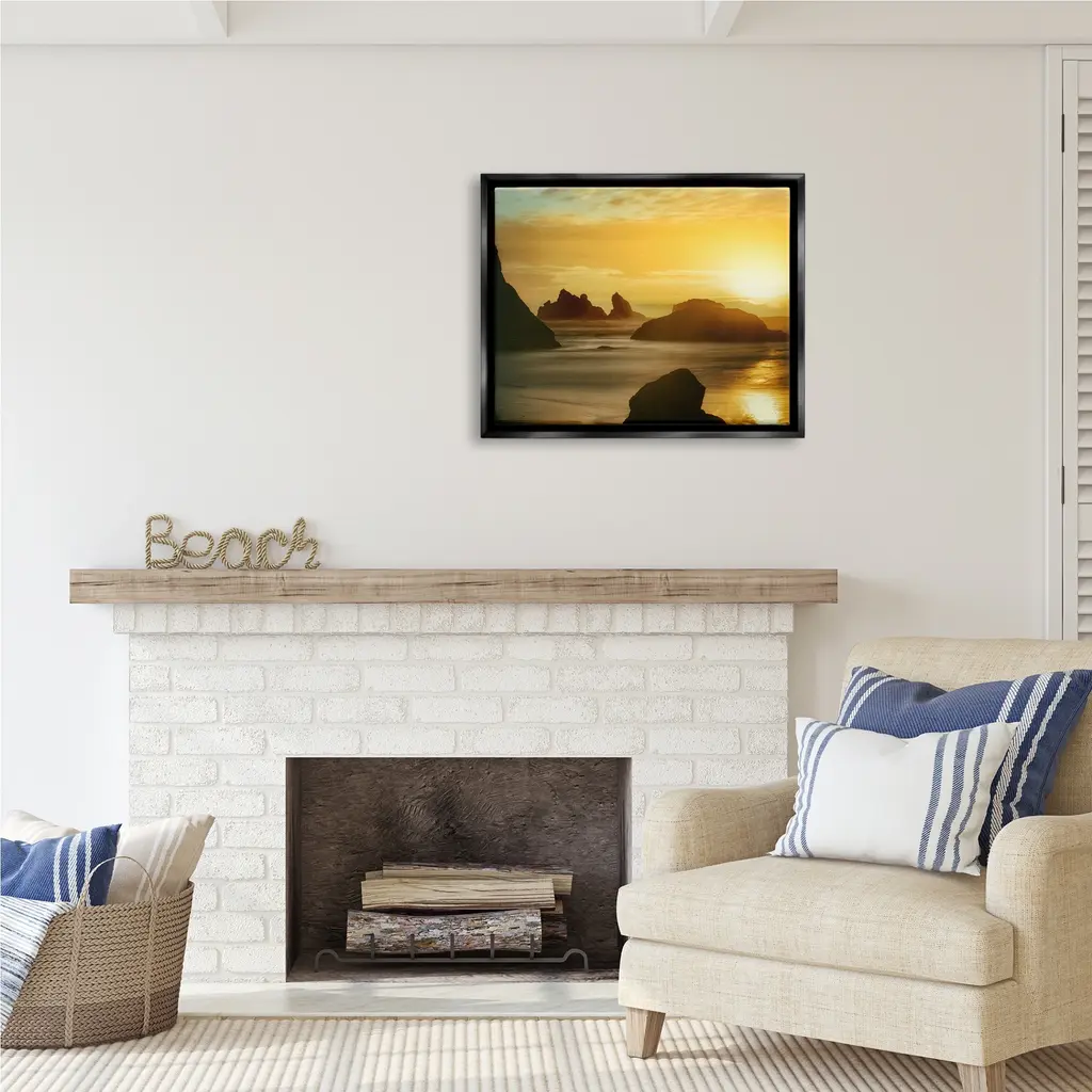 Stupell Sea Stacks At Sunset Framed Floater Canvas Wall Art Design By Dennis Frates - 31 X 25 - Black