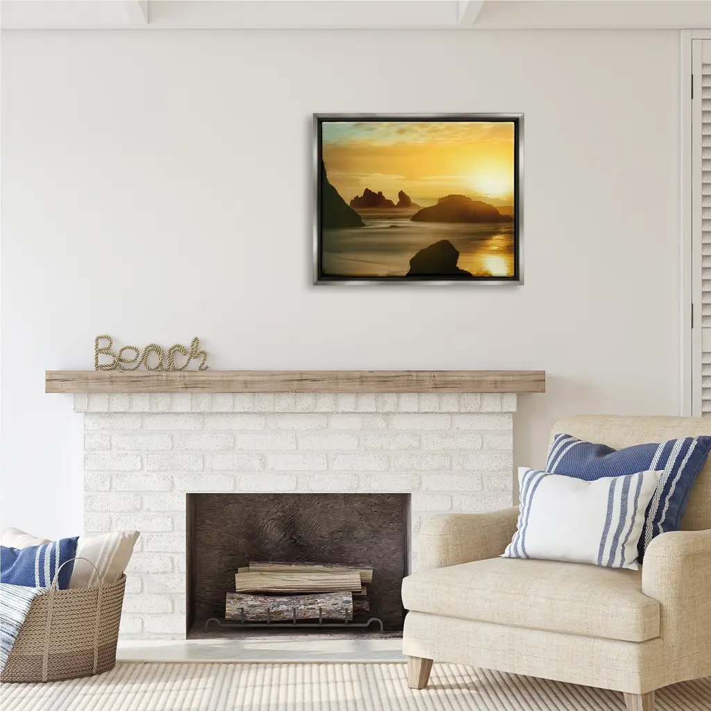 Stupell Sea Stacks At Sunset Framed Floater Canvas Wall Art Design By Dennis Frates - 31 X 25 - Grey