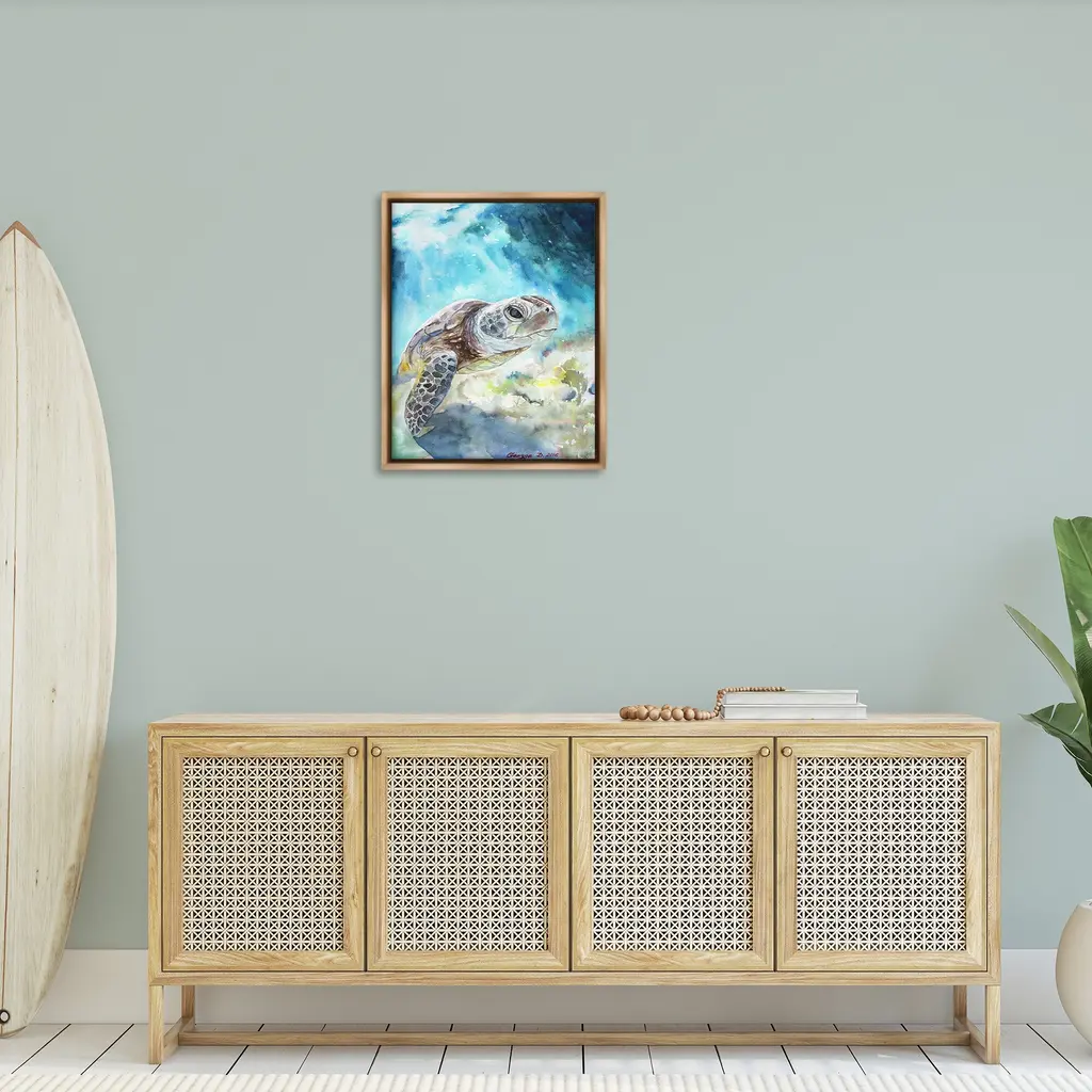 Elevate your home or office to the next level with Stupell Framed Floating Canvas Wall Art. Our premium hand-stretched canvas is mounted securely into a sturdy lightweight frame. The museum-style gap between the wrapped canvas and the box frame gives the illusion of floating artwork. Stupell Wall Art is made in the USA.Features: Dimensions: 17 x 1.7 x 21 Frame, 16 x 1.5 x 20 Canvas ArtFloating Frame Canvas Products are available in sizes 17"x21" and 25"x31". All Floating Frame Canvas Products have a 1.7" Depth.Wall Art is Ready to Hang with Hardware Free Hanging. No Installation required. For Easy Set Up Lean or Layer Artwork on Shelf or Against Wall. Artwork is Permently Fixed into the Frame.Our elevated 1.7" Thick Floating Frame is the perfect complement to our canvas style Wall Art. We use only the highest quality inks in house with industry leading printing solutions. Canvas is hand stretched over a durable wood foundation and then mounted securly into a Modern Box Frame. Made in the USA.Artwork Relates To: Animal, Aquatic, Nautical, Ocean, Turtle, TortoiseDesign by George Dyachenko