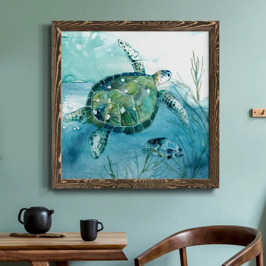 Elevate your home or office to the next level with Stupell Framed Floating Canvas Wall Art. Our premium hand-stretched canvas is mounted securely into a sturdy lightweight frame. The museum-style gap between the wrapped canvas and the box frame gives the illusion of floating artwork. Stupell Wall Art is made in the USA.Features: Dimensions: 11 x 1.7 x 25 Frame, 10 x 1.5 x 24 Canvas ArtFloating Frame Canvas Products are available in sizes 11"x25" and 14"x31". All Floating Frame Canvas Products have a 1.7" Depth.Wall Art is Ready to Hang with Hardware Free Hanging. No Installation required. For Easy Set Up Lean or Layer Artwork on Shelf or Against Wall. Artwork is Permently Fixed into the Frame.Our elevated 1.7" Thick Floating Frame is the perfect complement to our canvas style Wall Art. We use only the highest quality inks in house with industry leading printing solutions. Canvas is hand stretched over a durable wood foundation and then mounted securly into a Modern Box Frame. Made in the USA.Artwork Relates To: Animal, Sea Life, Turtle, Underwater, Tortoise, Nautical, AquaticDesign by Stellar Design Studio