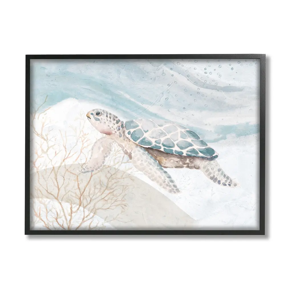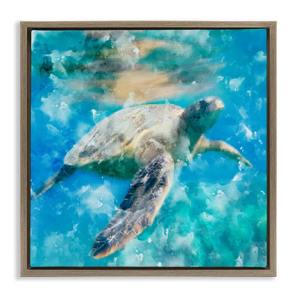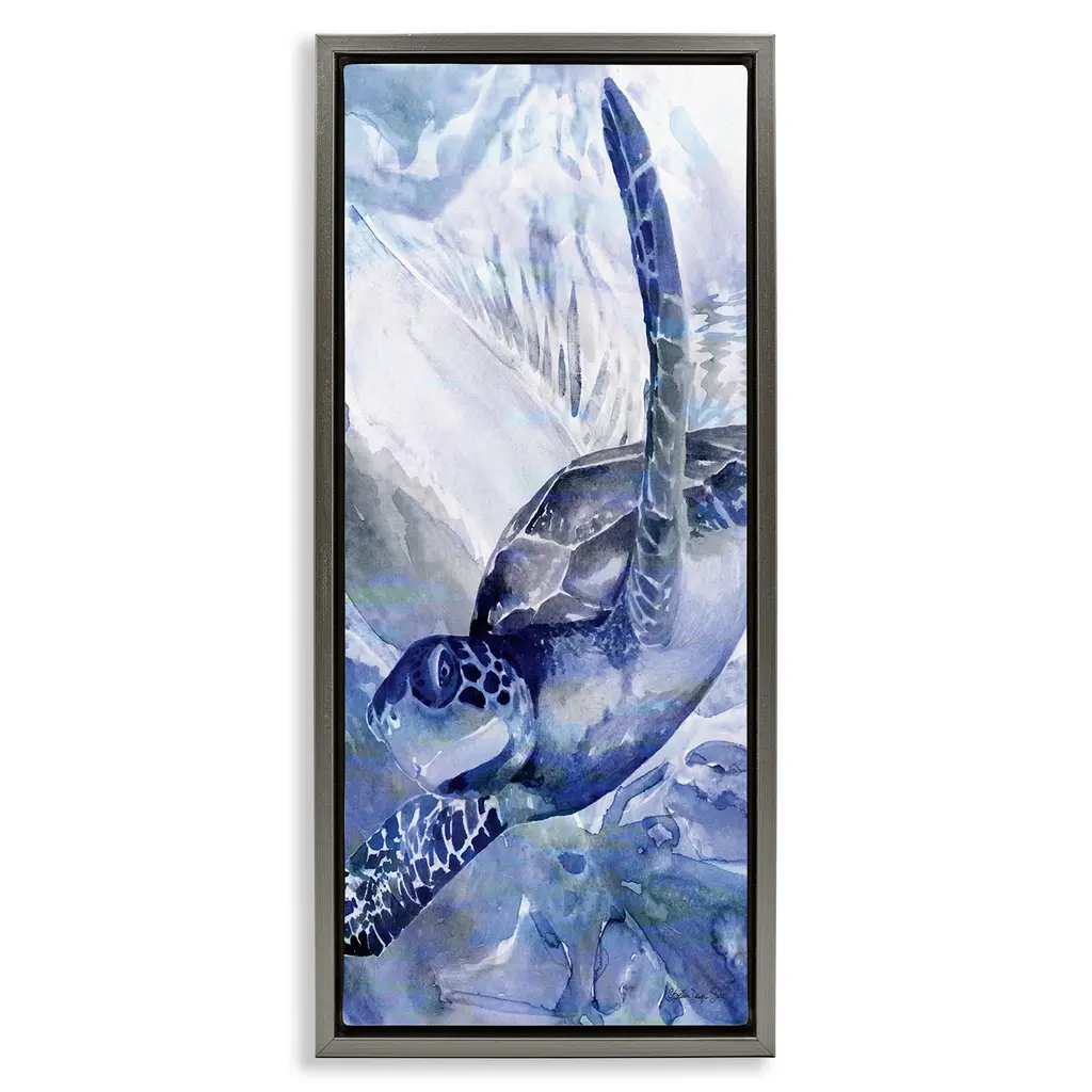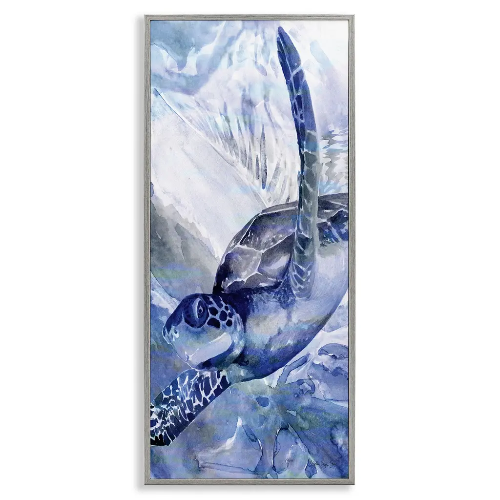 Elevate your home or office to the next level with Stupell Framed Floating Canvas Wall Art. Our premium hand-stretched canvas is mounted securely into a sturdy lightweight frame. The museum-style gap between the wrapped canvas and the box frame gives the illusion of floating artwork. Stupell Wall Art is made in the USA.Features: Dimensions: 11 x 1.7 x 25 Frame, 10 x 1.5 x 24 Canvas ArtFloating Frame Canvas Products are available in sizes 11"x25" and 14"x31". All Floating Frame Canvas Products have a 1.7" Depth.Wall Art is Ready to Hang with Hardware Free Hanging. No Installation required. For Easy Set Up Lean or Layer Artwork on Shelf or Against Wall. Artwork is Permently Fixed into the Frame.Our elevated 1.7" Thick Floating Frame is the perfect complement to our canvas style Wall Art. We use only the highest quality inks in house with industry leading printing solutions. Canvas is hand stretched over a durable wood foundation and then mounted securly into a Modern Box Frame. Made in the USA.Artwork Relates To: Animal, Sea Life, Turtle, Underwater, Tortoise, Nautical, AquaticDesign by Stellar Design Studio