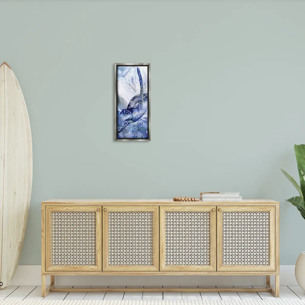 Elevate your home or office to the next level with Stupell Framed Floating Canvas Wall Art. Our premium hand-stretched canvas is mounted securely into a sturdy lightweight frame. The museum-style gap between the wrapped canvas and the box frame gives the illusion of floating artwork. Stupell Wall Art is made in the USA.Features: Dimensions: 11 x 1.7 x 25 Frame, 10 x 1.5 x 24 Canvas ArtFloating Frame Canvas Products are available in sizes 11"x25" and 14"x31". All Floating Frame Canvas Products have a 1.7" Depth.Wall Art is Ready to Hang with Hardware Free Hanging. No Installation required. For Easy Set Up Lean or Layer Artwork on Shelf or Against Wall. Artwork is Permently Fixed into the Frame.Our elevated 1.7" Thick Floating Frame is the perfect complement to our canvas style Wall Art. We use only the highest quality inks in house with industry leading printing solutions. Canvas is hand stretched over a durable wood foundation and then mounted securly into a Modern Box Frame. Made in the USA.Artwork Relates To: Animal, Sea Life, Turtle, Underwater, Tortoise, Nautical, AquaticDesign by Stellar Design Studio