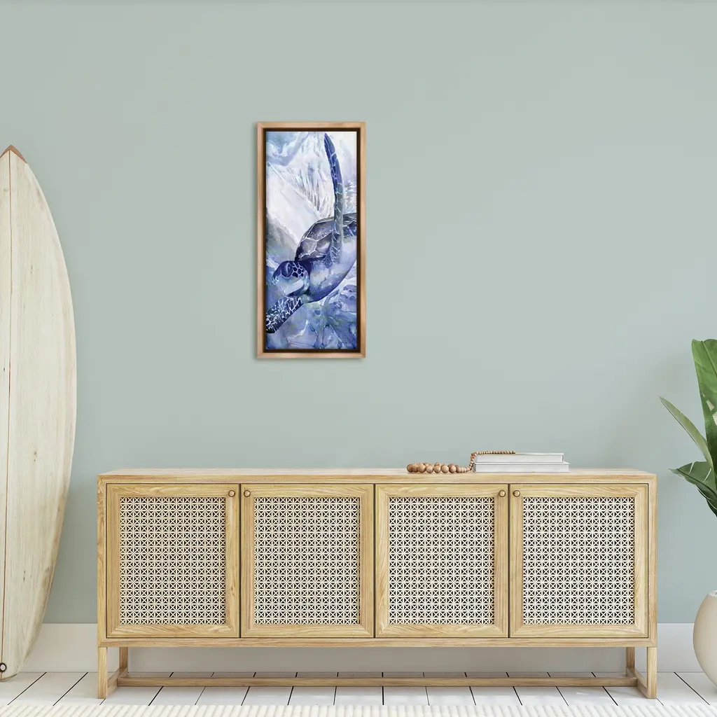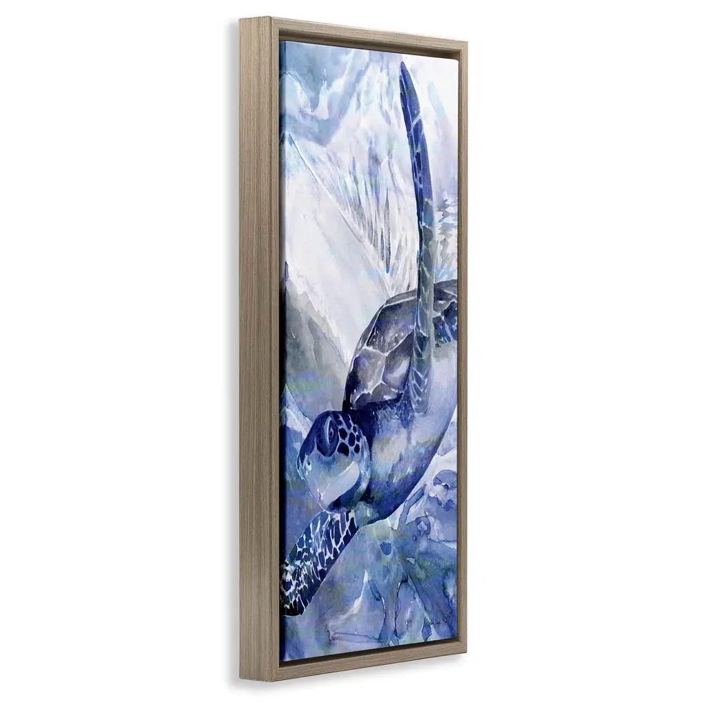 Elevate your home or office to the next level with Stupell Framed Floating Canvas Wall Art. Our premium hand-stretched canvas is mounted securely into a sturdy lightweight frame. The museum-style gap between the wrapped canvas and the box frame gives the illusion of floating artwork. Stupell Wall Art is made in the USA.Features: Dimensions: 11 x 1.7 x 25 Frame, 10 x 1.5 x 24 Canvas ArtFloating Frame Canvas Products are available in sizes 11"x25" and 14"x31". All Floating Frame Canvas Products have a 1.7" Depth.Wall Art is Ready to Hang with Hardware Free Hanging. No Installation required. For Easy Set Up Lean or Layer Artwork on Shelf or Against Wall. Artwork is Permently Fixed into the Frame.Our elevated 1.7" Thick Floating Frame is the perfect complement to our canvas style Wall Art. We use only the highest quality inks in house with industry leading printing solutions. Canvas is hand stretched over a durable wood foundation and then mounted securly into a Modern Box Frame. Made in the USA.Artwork Relates To: Animal, Sea Life, Turtle, Underwater, Tortoise, Nautical, AquaticDesign by Stellar Design Studio