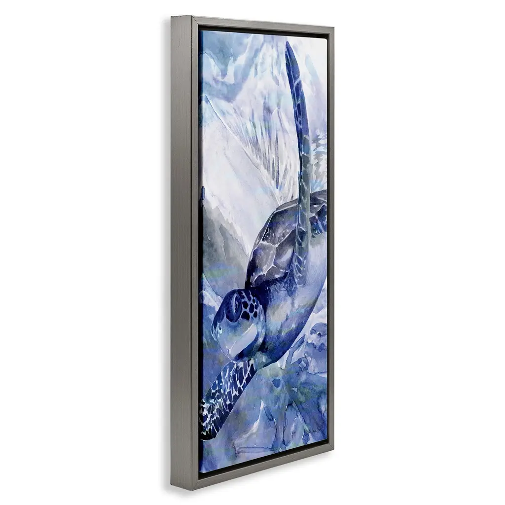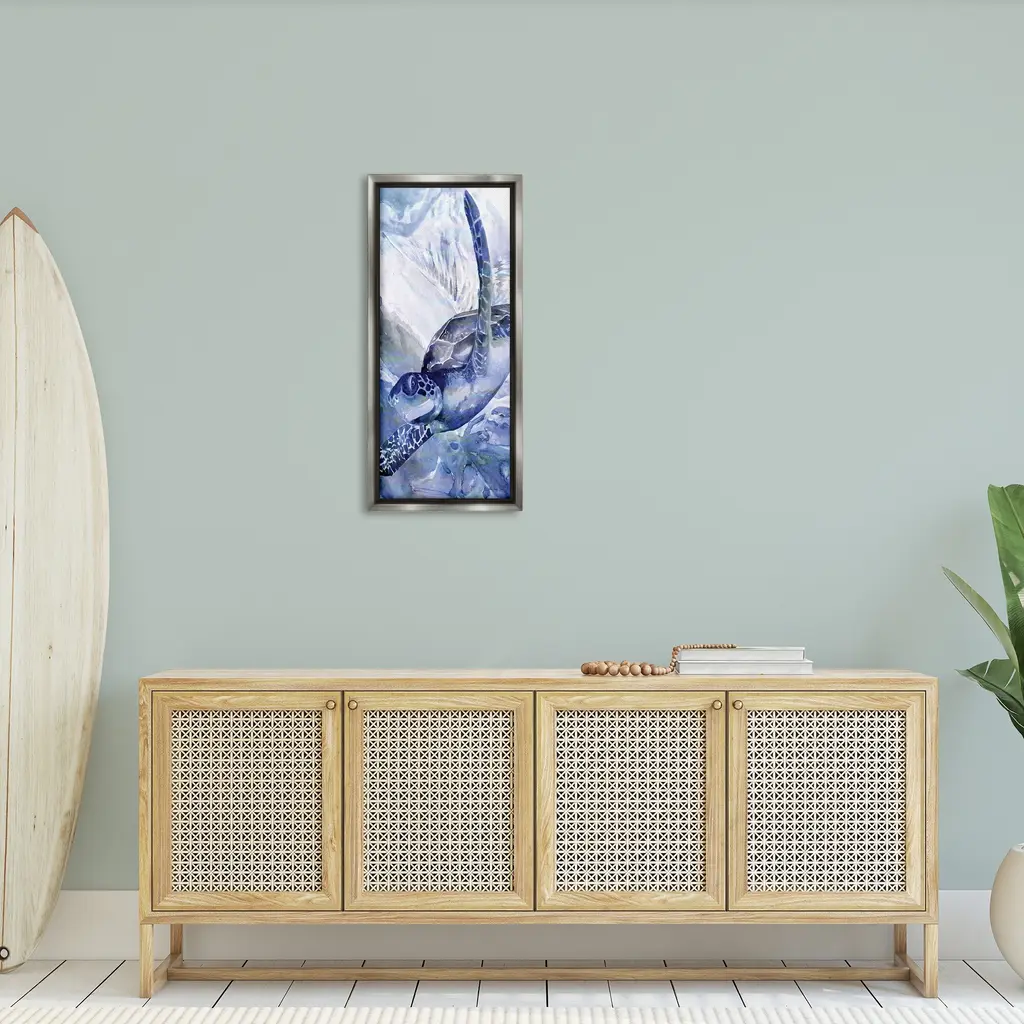 Elevate your home or office to the next level with Stupell Framed Floating Canvas Wall Art. Our premium hand-stretched canvas is mounted securely into a sturdy lightweight frame. The museum-style gap between the wrapped canvas and the box frame gives the illusion of floating artwork. Stupell Wall Art is made in the USA.Features: Dimensions: 11 x 1.7 x 25 Frame, 10 x 1.5 x 24 Canvas ArtFloating Frame Canvas Products are available in sizes 11"x25" and 14"x31". All Floating Frame Canvas Products have a 1.7" Depth.Wall Art is Ready to Hang with Hardware Free Hanging. No Installation required. For Easy Set Up Lean or Layer Artwork on Shelf or Against Wall. Artwork is Permently Fixed into the Frame.Our elevated 1.7" Thick Floating Frame is the perfect complement to our canvas style Wall Art. We use only the highest quality inks in house with industry leading printing solutions. Canvas is hand stretched over a durable wood foundation and then mounted securly into a Modern Box Frame. Made in the USA.Artwork Relates To: Animal, Sea Life, Turtle, Underwater, Tortoise, Nautical, AquaticDesign by Stellar Design Studio
