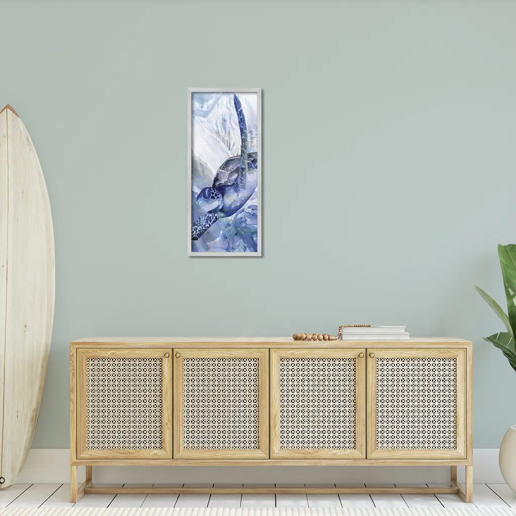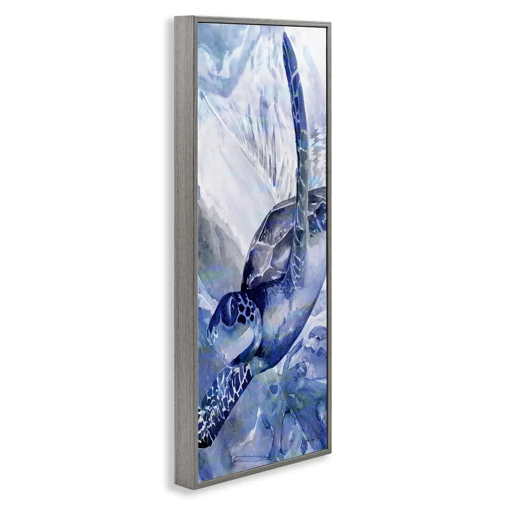 Add dimension to any room with our textured Framed Giclee Artwork. Our framed artwork is securely mounted into a 1.5-inch thick wood grain frame and ready to hang. Frames are available in three alluring styles: black, gray farmhouse and white. In addition, you should check out our oversized options if you want a statement piece. Stupell Wall Art is made in the USA.Features: Dimensions: 10 x 1.5 x 24 FramedFramed Giclee Product Sizes include 10"x24" and 13"x30". All Framed Giclee products have a 1.5" Depth.Wall Art is Ready to Hang with Hardware Free Hanging. No installation required. For Easy Set Up Lean or Layer Artwork on Shelf or Against Wall.Our giclée prints are carefully mounted on a durable MDF backing, and then perfectly finished in a 1.5 inch thick woodgrain frame. Mounted frame colors include black, gray farmhouse and white. Made In USA.Artwork Relates To: Animal, Sea Life, Turtle, Underwater, Tortoise, Nautical, AquaticDesign by Stellar Design Studio