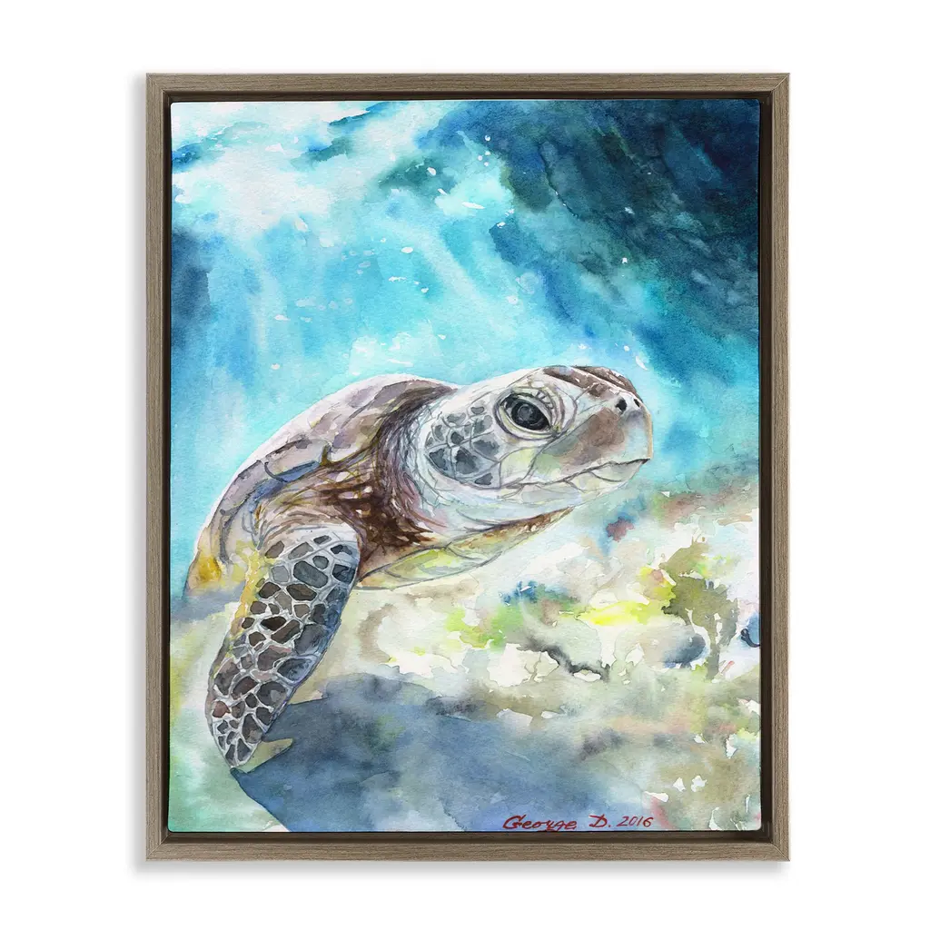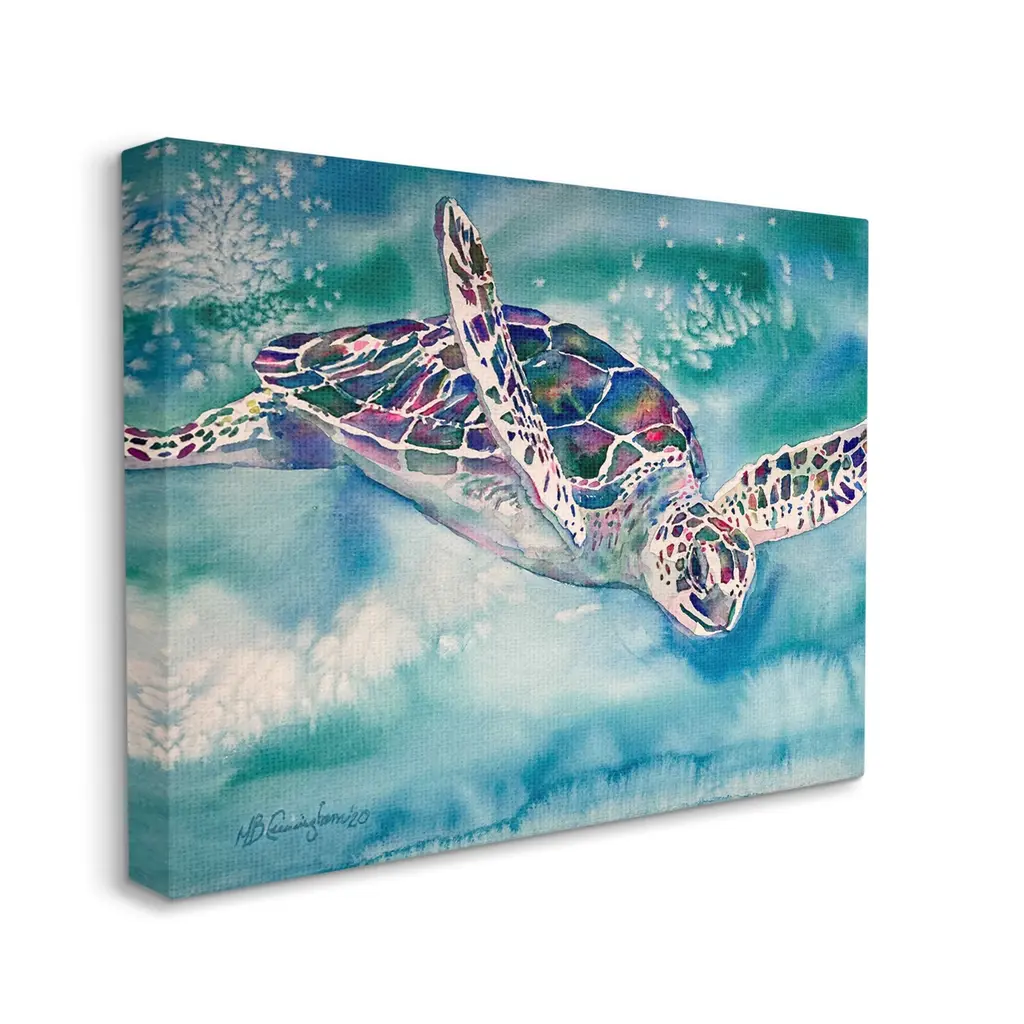 Stupell Sea Turtle Swimming Ocean Water Reptile Watercolor Canvas Wall Art - 16 X 20