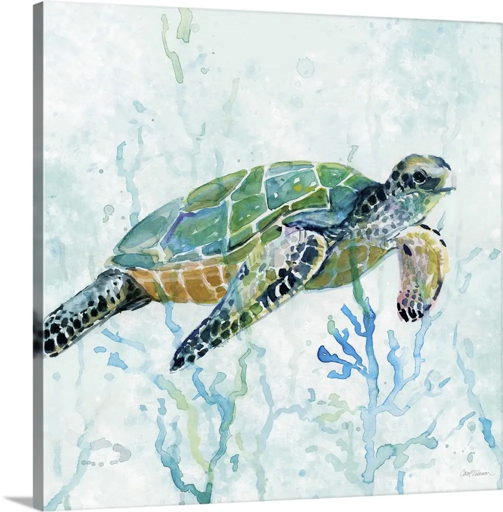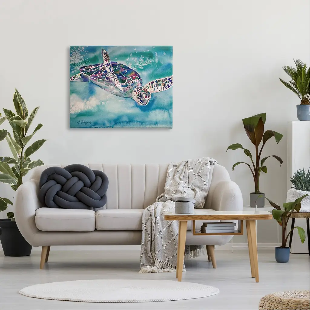 Stupell Sea Turtle Swimming Ocean Water Reptile Watercolor Canvas Wall Art - 30 X 40