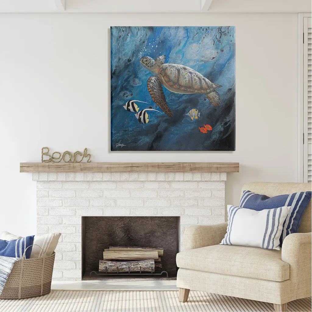 Proudly made in the USA, Our stretched canvas is created with the highest standards. We use only the highest quality inks and canvas on our in house Mimaki printers, and then hand cut and stretch each piece over a 1.5 inch thick wooden frame for hanging. The art comes ready to hang with no installation required.Features: Dimensions: 16 x 1.5 x 20 InchesStretched Canvas Sizes Include Standard: 16 x 1.5 x 20 Large: 20 x 1.5 x 30 X-Large: 30 x 1.5 x 40 Oversized: 36 x 1.5 x 48Wall Art is Ready to Hang - No Installation or Hardware Needed. For Easy Set Up Lean or Layer Artwork on Shelf or Against Wall.Our stretched canvas is created with the highest standards. We use only the highest quality inks and canvas on our in house Mimaki printers, and then hand cut and stretch each piece over a 1.5 inch thick wooden frame for hanging. Made In USA.Artwork Relates To: Turtle, Sea Life, Animal, Reptile, Sea Turtle, Tortoise, Fish, Sea, Water, Nature, Coral Reef, AquaticDesign by Dave Bartholet