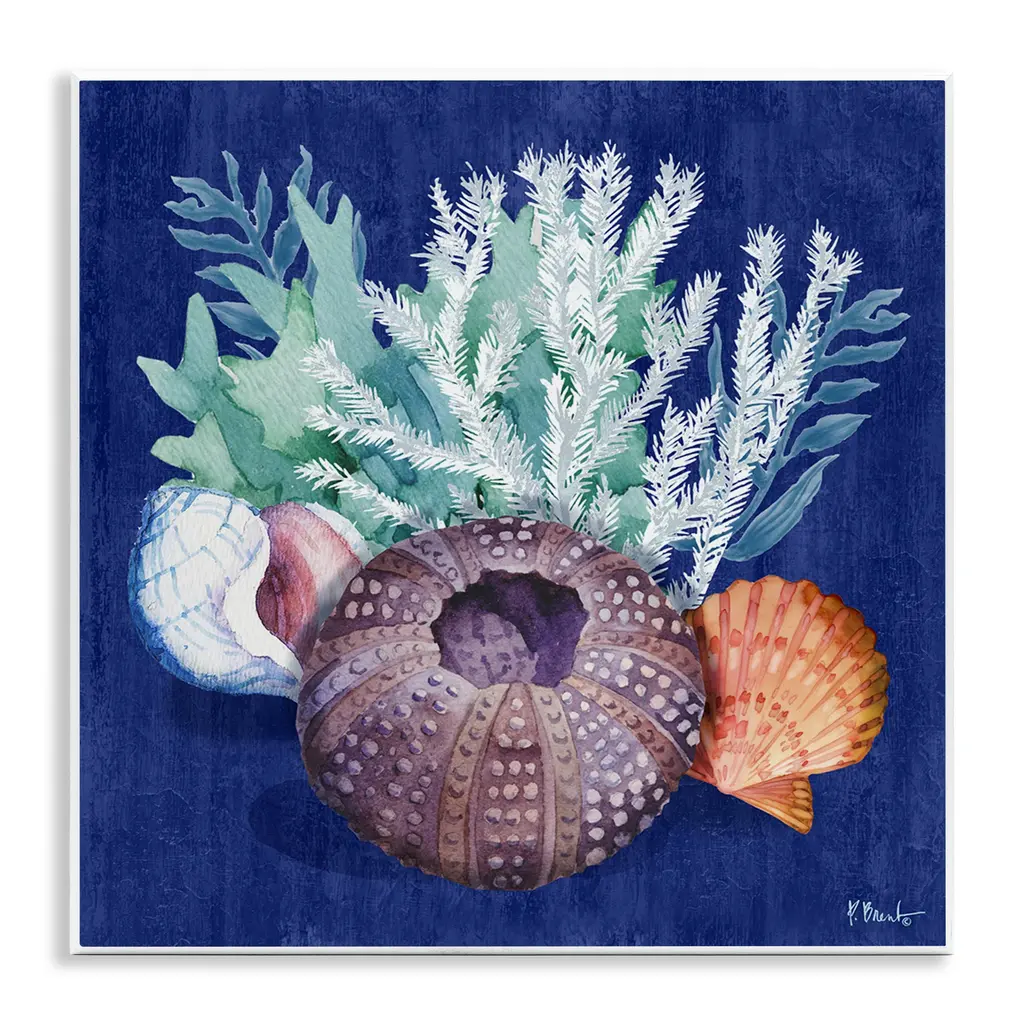 Our wall plaques start as high-quality lithograph prints mounted on durable 0.5-inch thick MDF wood. Each piece is hand finished and comes with a fresh layer of white foil on the sides to give it a crisp, clean look. Plaques arrive ready to hang without installation and come with removable plastic corners to keep them from damage in transit. Stupell Wall Art is made in the USA.Features: Dimensions: 12 x 0.5 x 12 InchesWall Art is Ready to Hang with Hardware Free Hanging. No installation required. For Easy Set Up Lean or Layer Artwork on Shelf or Against Wall.All of our wall plaques start off as high quality lithograph prints that are then mounted on durable 0.5 inch thick MDF wood. Each piece is hand finished and comes with a fresh layer of foil on the sides to give it a crisp clean look. Made In USA.Artwork Relates To: Animal, Sea Life, Water, Plant, Coral, Aquatic, Seashell, Beach, Urchin, NauticalDesign by Paul Brent