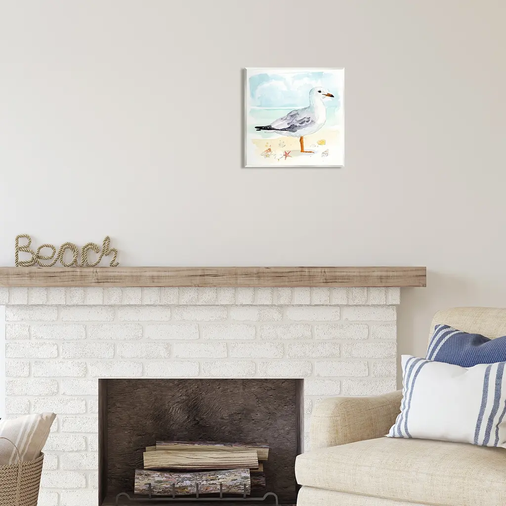 Our wall plaques start as high-quality lithograph prints mounted on durable 0.5-inch thick MDF wood. Each piece is hand finished and comes with a fresh layer of white foil on the sides to give it a crisp, clean look. Plaques arrive ready to hang without installation and come with removable plastic corners to keep them from damage in transit. Stupell Industries Wall Art is made in the USA.Features: Dimensions: 12 x 0.5 x 12 InchesWall Art is Ready to Hang with Hardware Free Hanging. No installation required. For Easy Set Up Lean or Layer Artwork on Shelf or Against Wall.All of our wall plaques start off as high quality lithograph prints that are then mounted on durable 0.5 inch thick MDF wood. Each piece is hand finished and comes with a fresh layer of foil on the sides to give it a crisp clean look. Made In USA.Artwork Relates To: Animal, Bird, Seagull, Waterfowl, Beak, Seashell, Beach, ShoreDesign by Victoria Barnes