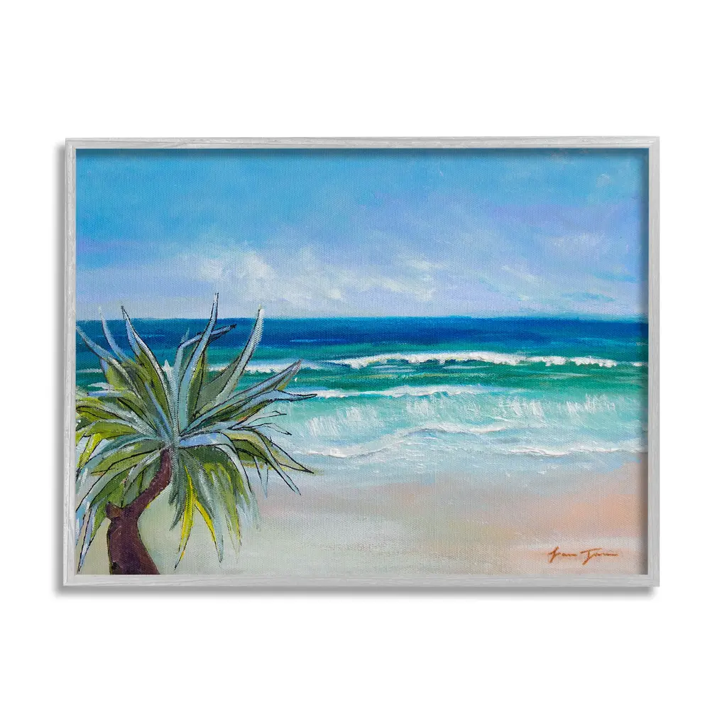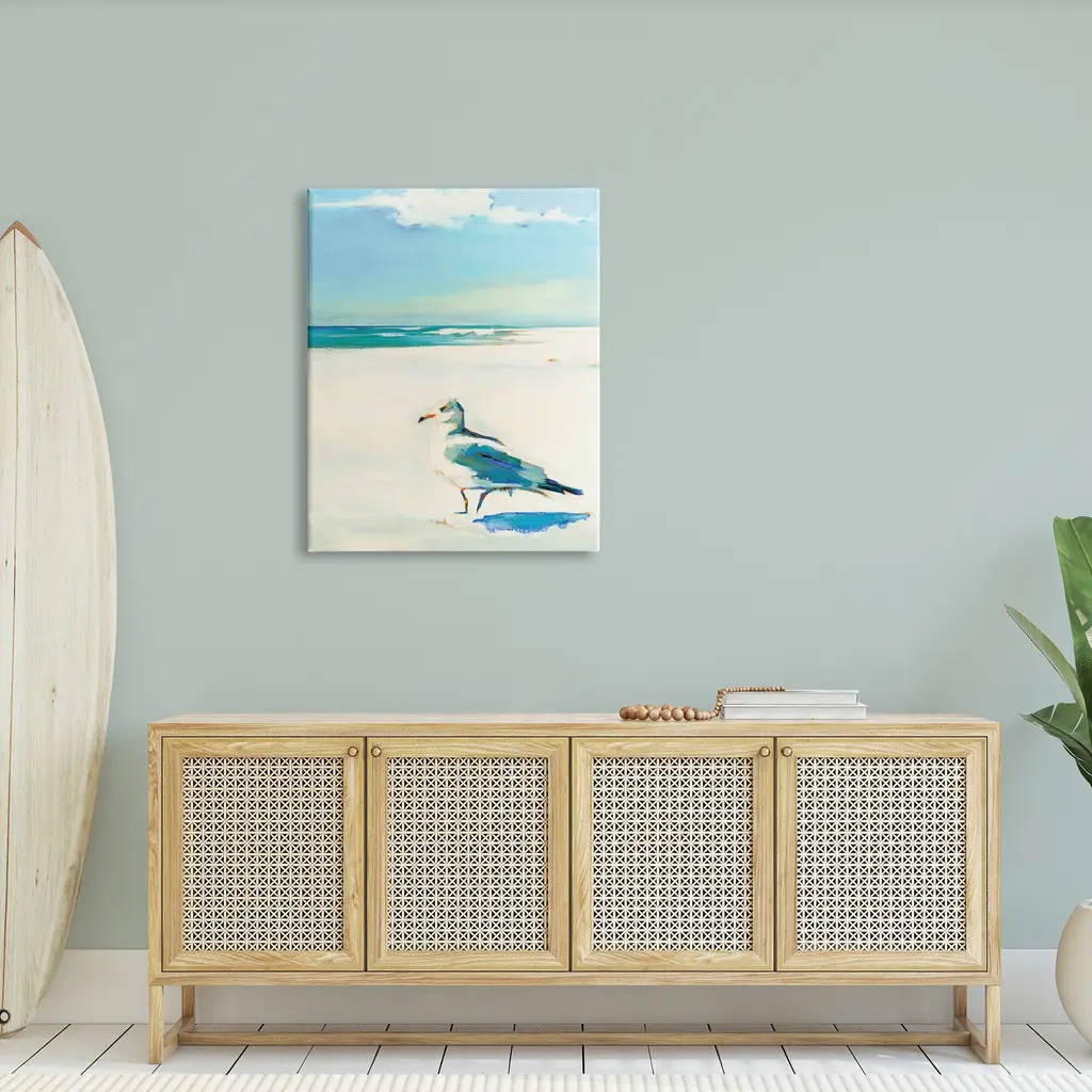 Stupell Seagull On Sandy Shore Soft Tranquil Beach Scene Canvas Wall Art - Blue - 30 X 40
