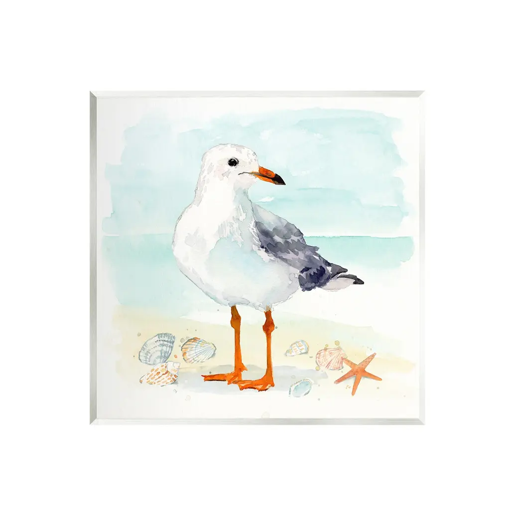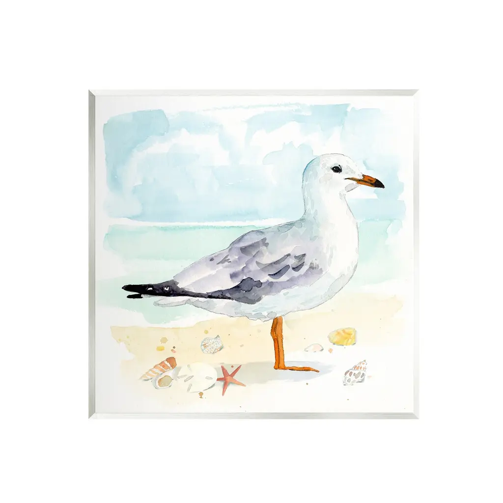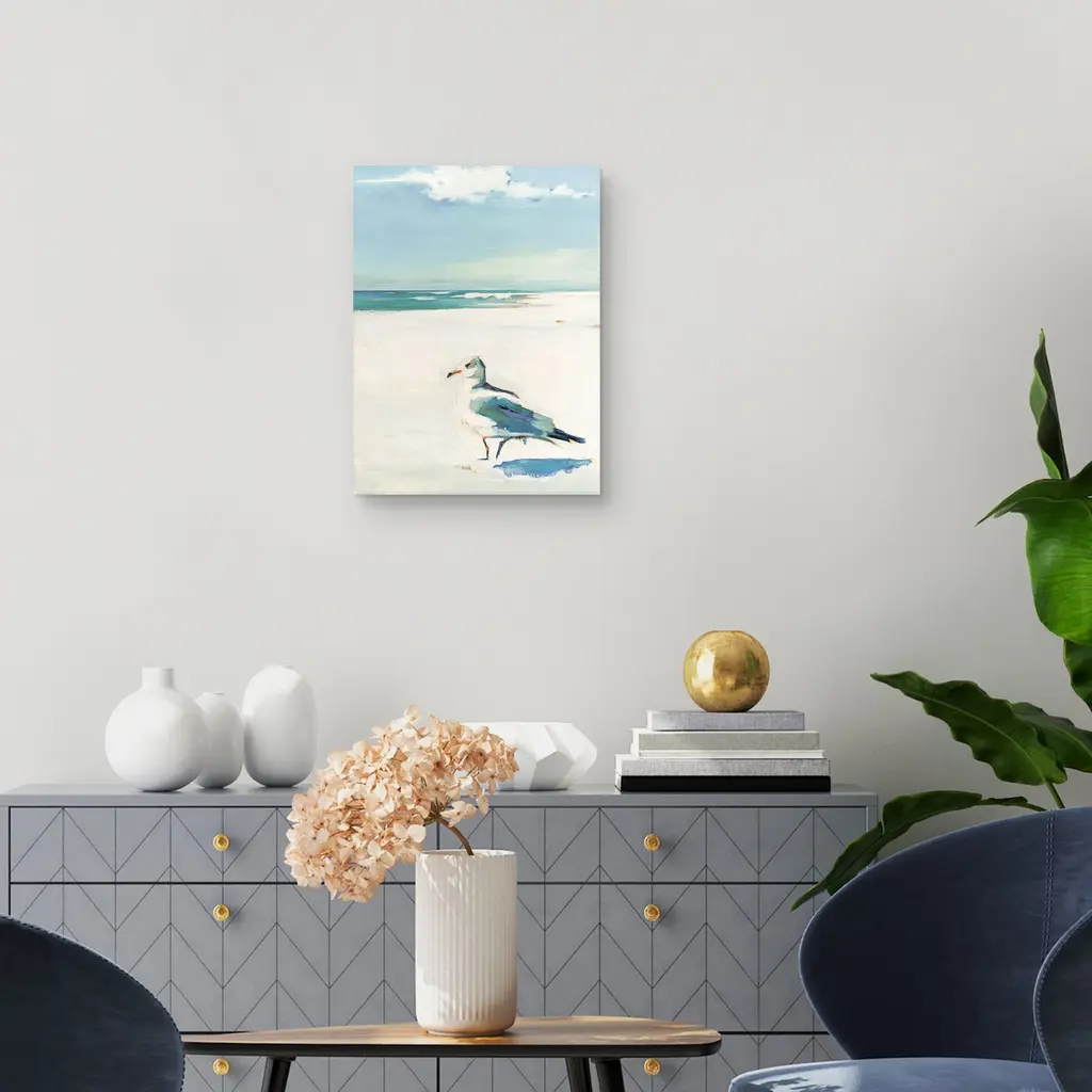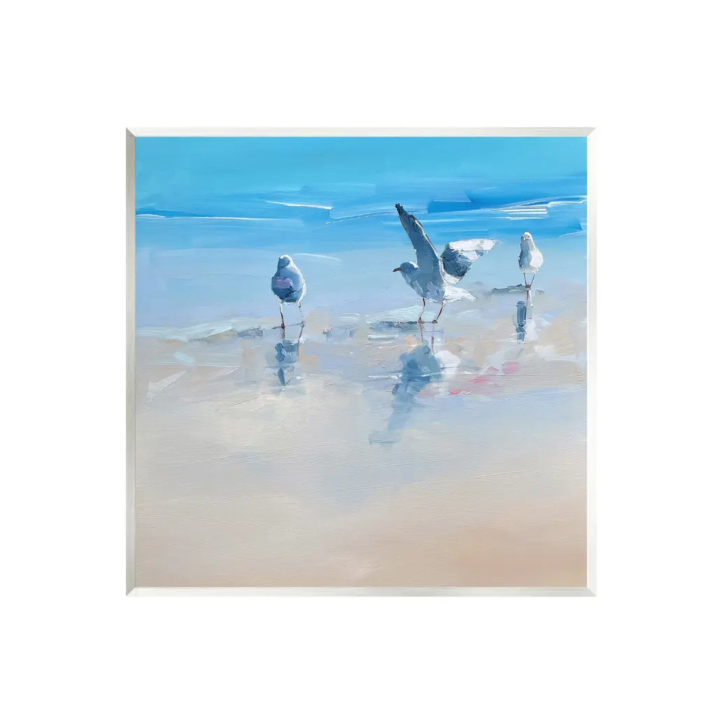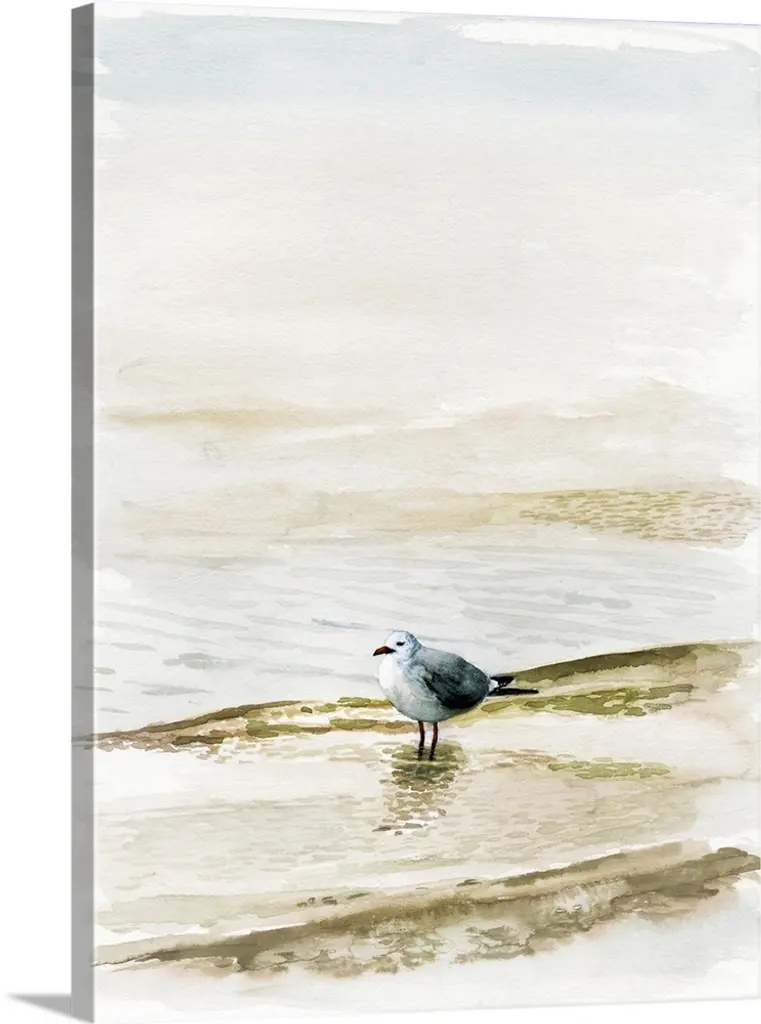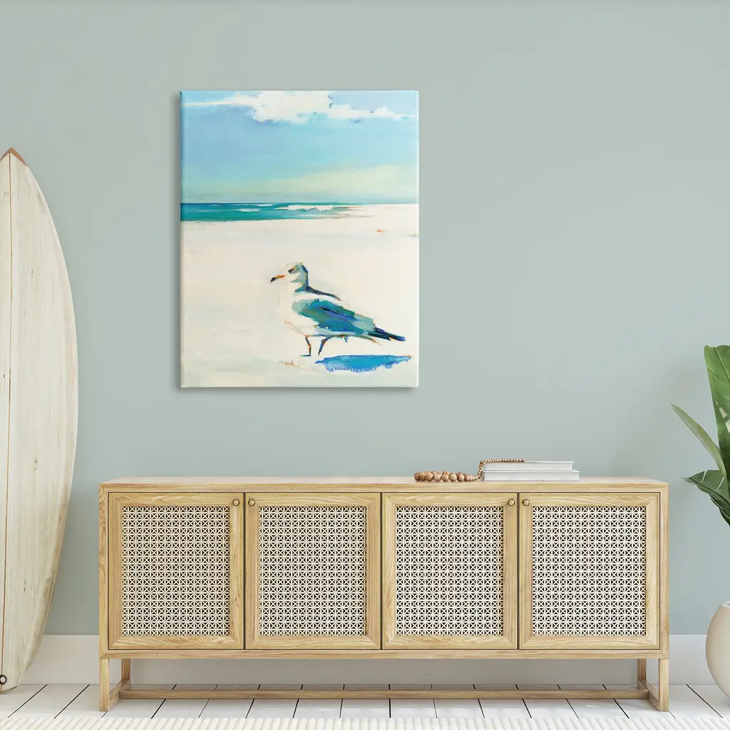 Stupell Seagull On Sandy Shore Soft Tranquil Beach Scene Canvas Wall Art - Blue - 36 X 48