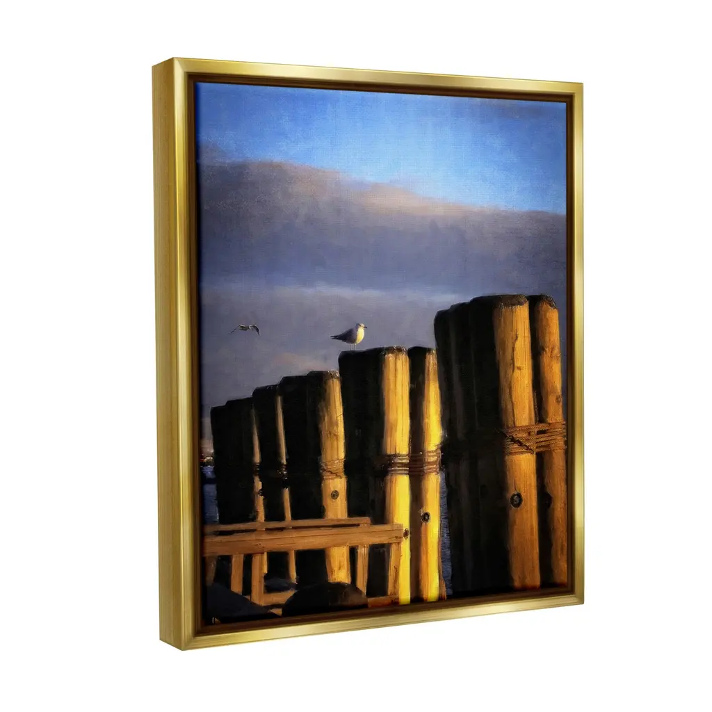 Elevate your home or office to the next level with Stupell Framed Floating Canvas Wall Art. Our premium hand-stretched canvas is mounted securely into a sturdy lightweight frame. The museum-style gap between the wrapped canvas and the box frame gives the illusion of floating artwork. Stupell Wall Art is made in the USA.Features: Dimensions: 17 x 1.7 x 21 Frame, 16 x 1.5 x 20 Canvas ArtFloating Frame Canvas Products are available in sizes 17"x21" and 25"x31". All Floating Frame Canvas Products have a 1.7" Depth.Wall Art is Ready to Hang with Hardware Free Hanging. No Installation required. For Easy Set Up Lean or Layer Artwork on Shelf or Against Wall. Artwork is Permently Fixed into the Frame.Our elevated 1.7" Thick Floating Frame is the perfect complement to our canvas style Wall Art. We use only the highest quality inks in house with industry leading printing solutions. Canvas is hand stretched over a durable wood foundation and then mounted securly into a Modern Box Frame. Made in the USA.Artwork Relates To: Painting, Animal, Bird, Water, Waterfront, Beach, Coast, Seagull, Waterfowl, Sea, Shoreline, PierDesign by GraffiTee Studios