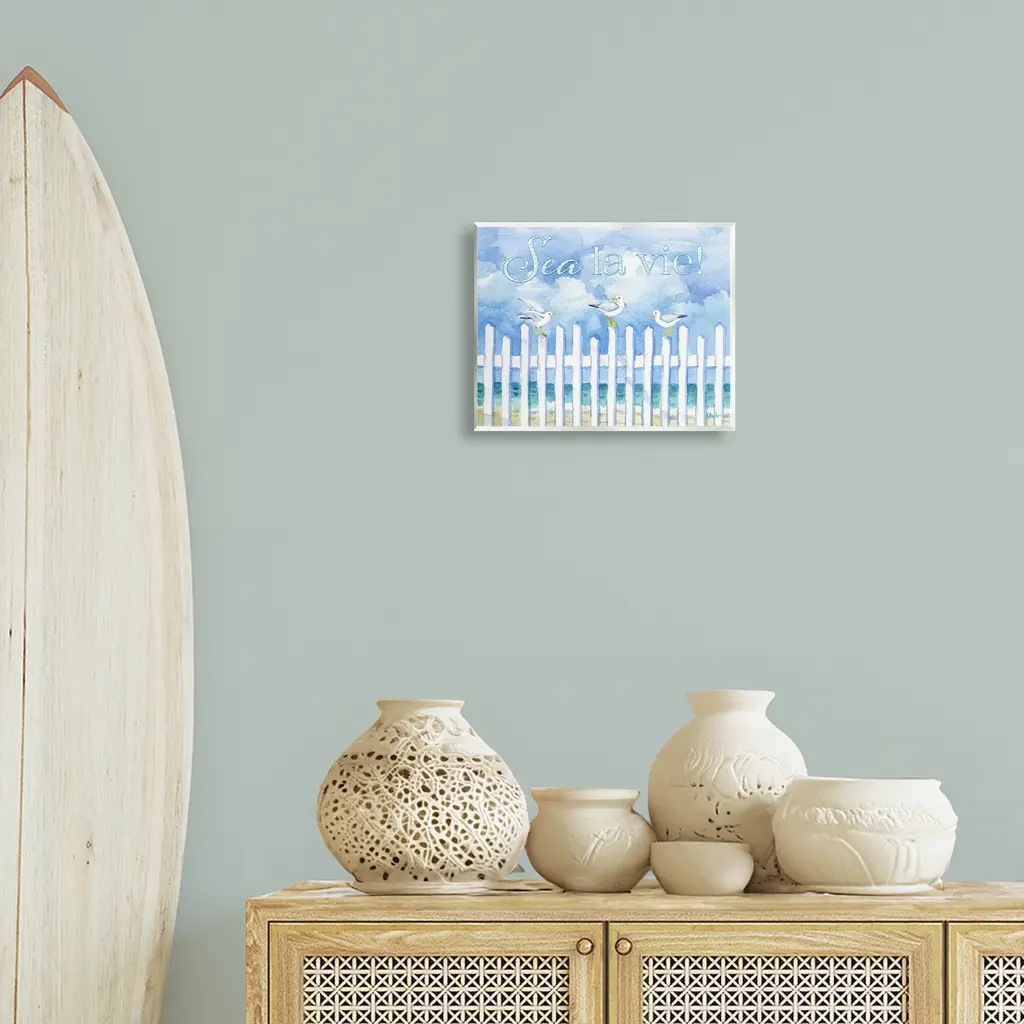 Our wall plaques start as high-quality lithograph prints mounted on durable 0.5-inch thick MDF wood. Each piece is hand finished and comes with a fresh layer of white foil on the sides to give it a crisp, clean look. Plaques arrive ready to hang without installation and come with removable plastic corners to keep them from damage in transit. Stupell Wall Art is made in the USA.Features: Dimensions: 14 x 0.5 x 11 InchesWall Art is Ready to Hang with Hardware Free Hanging. No installation required. For Easy Set Up Lean or Layer Artwork on Shelf or Against Wall.All of our wall plaques start off as high quality lithograph prints that are then mounted on durable 0.5 inch thick MDF wood. Each piece is hand finished and comes with a fresh layer of foil on the sides to give it a crisp clean look. Made In USA.Artwork Relates To: Nautical, Beach, Ocean, Sea, Bird, SeagullDesign by Paul Brent