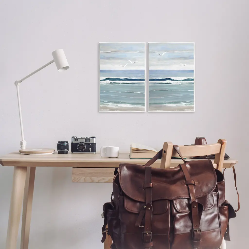 Fill any space with Stupell Wall Art Sets. Our wall plaques start as high-quality lithograph prints mounted on durable 0.5-inch thick MDF wood. Each piece is hand finished and comes with a fresh layer of white foil on the sides to give it a crisp, clean look. Plaques arrive ready to hang without installation and come with removable plastic corners to keep them from damage in transit. Wall Art is made in the USA.Features: Dimensions: 2 Piece Set, Each Panel is 10 x 0.5 x 15 InchesWall Plaque Set Sizes Include Standard: 2pc, Each is 10 x 0.5 x 15 Oversized: 2pc, Each is 13 x 0.5 x 19Wall Art is Ready to Hang with Hardware Free Hanging. No installation required. For Easy Set Up Lean or Layer Artwork on Shelf or Against Wall.All of our wall plaques start off as high quality lithograph prints that are then mounted on durable 0.5 inch thick MDF wood. Each piece is hand finished and comes with a fresh layer of foil on the sides to give it a crisp clean look. Made In USA.Artwork Relates To: Nature, Sea, Water, Sea Waves, Animal, Bird, Beach, Coast, Shoreline, Painting, Scenery, Seagull, Waterfowl, FlyingDesign by Sally Swatland
